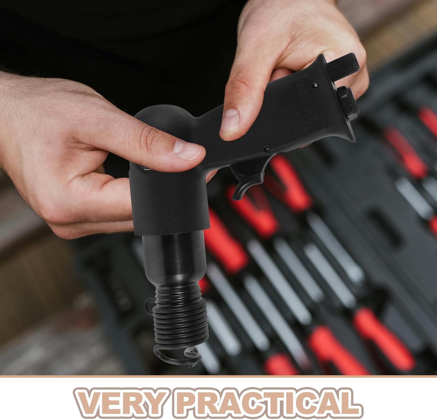 Description Our air chisel for automotive is engineered to tackle tough jobs with ease. Featuring a stable construction and a range of interchangeable chisel heads, it is perfect for removing rust, cutting through metal, and shaping materials. The ergonomic design ensures comfort during prolonged use, making it an essential tool for mechanics and metalworkers. Features -Color:Black -Material:Alloy, plastic -Size:16.00X13.00X4.50cm/6.29X5.11X1.77in -Professional rust removal: achieve nice rust removal results with this high-performance pneumatic tool, designed for tough industrial and automotive tasks -Special for brake work: tailored for brake pad replacement and repair, providing precise impact force for efficient and accurate work -Complete tool: offers versatile applications, including chiseling, cutting, and rust removal, to meet various job requirements -Ergonomic design: lightweight and well-balanced for reduced strain, ensuring a comfortable and productive work experience -Reliable: features robust pneumatic components for consistent operation and extended service life