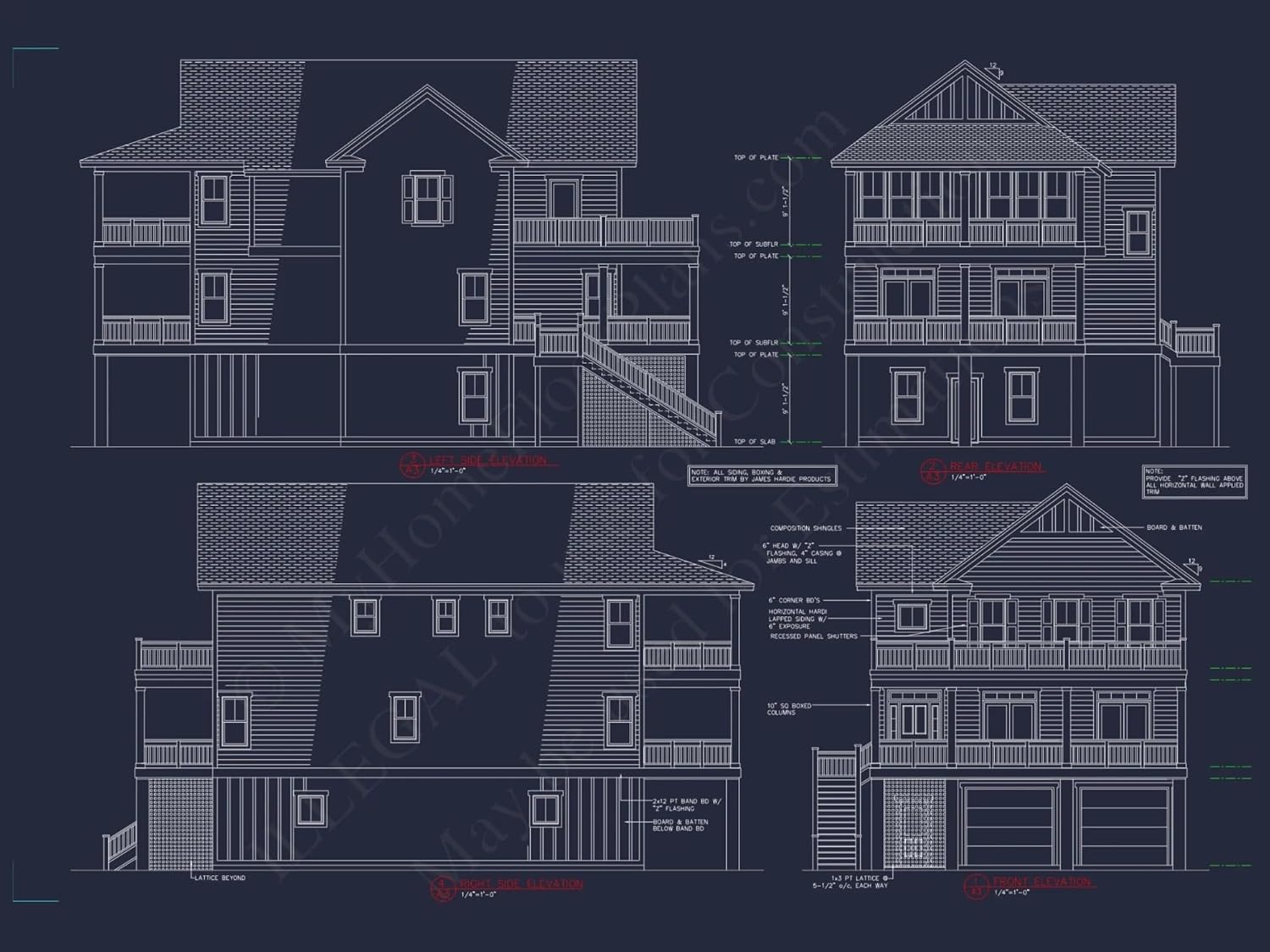 Width: 33′-0″Depth: 44′-4″Htd SF: 3,031Unhtd SF: 637Coastal 3-Story House Plan with Elevator, Porches & CAD DesignsDiscover this stunning 3-floor coastal house plan with 3,031 heated sq. ft., 4 bedrooms, luxurious features, and CAD-ready blueprints included.This coastal-style house plan offers a perfect mix of elegance, functionality, and durability. Designed with modern families in mind, it features smart layouts, high-end finishes, and architectural details perfect for narrow coastal lots.Key Features of the Home PlanLiving Areas - Heated & UnheatedHeated area: 3,031 sq. ft. across three full stories.Unheated extras: Covered porches, balconies, and a two-bay garage.Bedrooms & Bathrooms4 total bedrooms including a vaulted Owner Suite on the upper floor.3.5 bathrooms thoughtfully placed across all levels for ease and privacy.Interior HighlightsElevator access connects all three floors—perfect for aging in place or multi-gen living. See elevator-equipped homes.Open floor plan design in the great room promotes entertaining and daily flow. Explore open concepts.Chef's kitchen with oversized island and walk-in pantry.Bonus and recreation rooms for work, play, or guests.Mudroom provides organized entry from the garage.Garage & Storage DetailsGarage Bays: 2-car garage located on the lower level.Garage Type: Attached with front-entry access.Storage: Walk-in closets, attic storage, and integrated mudroom space.Outdoor Living FeaturesCovered front and rear porches for relaxing coastal evenings.Balconies with stunning elevated views.Durable exterior finishes using HardiPlank and board-and-batten siding.Outdoor fire pit area for year-round enjoyment. See homes with outdoor fireplaces.Architectural Style: Coastal ContemporaryThis design blends coastal elegance with modern architecture—perfect for families who love functional layouts and eye-catching curb appeal. Learn more