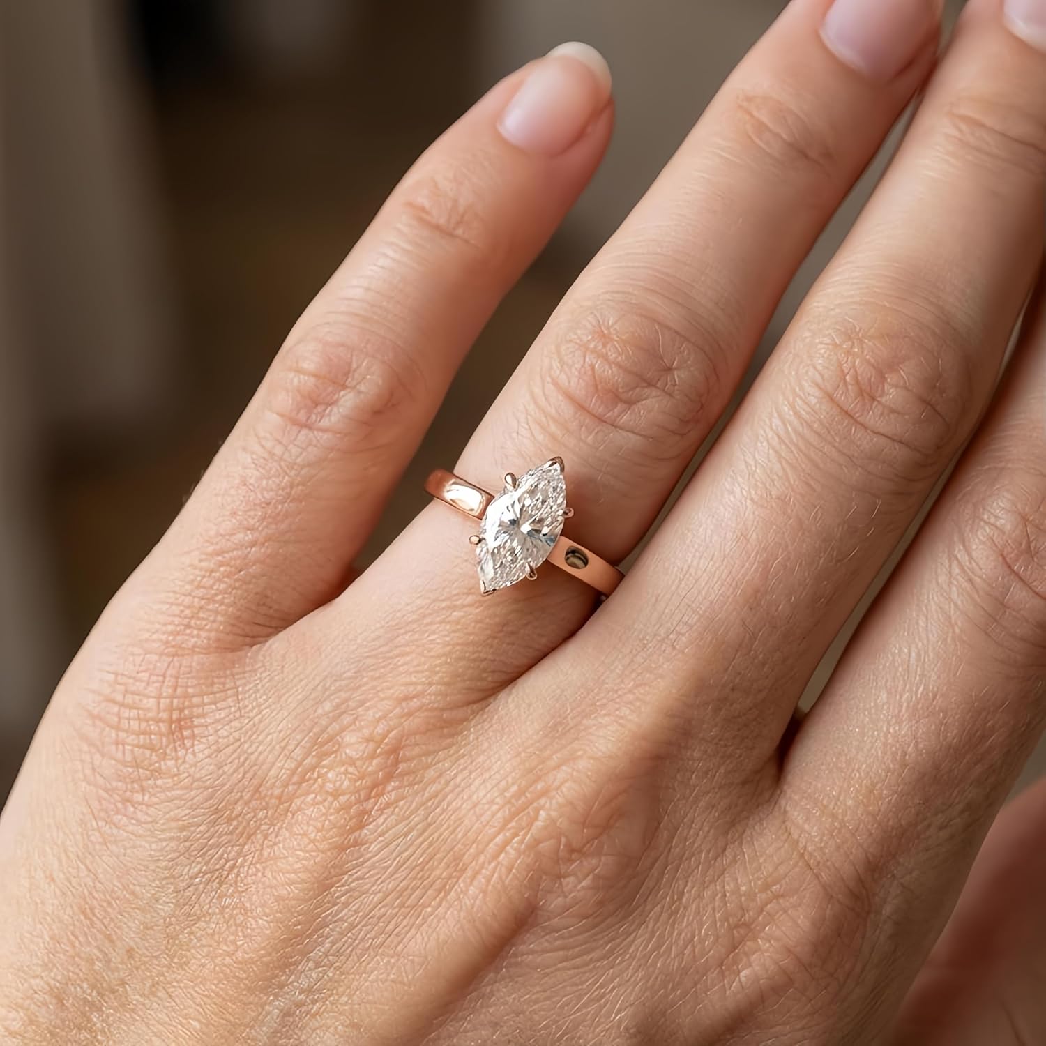 【Delivery Includes】 1 x 18K Marquise Cut Diamond Solitaire Ring 1 x Luxury Gift Box 1 x Jewelry Care Cloth 【Care Instructions】 1. Store your diamond ring in a soft pouch or the included box to prevent scratches. 2. Clean gently with the enclosed cloth and avoid harsh chemicals. 3. Remove ring before swimming, exercising, or household chores to preserve shine. 4. Keep away from direct heat and sunlight when storing.