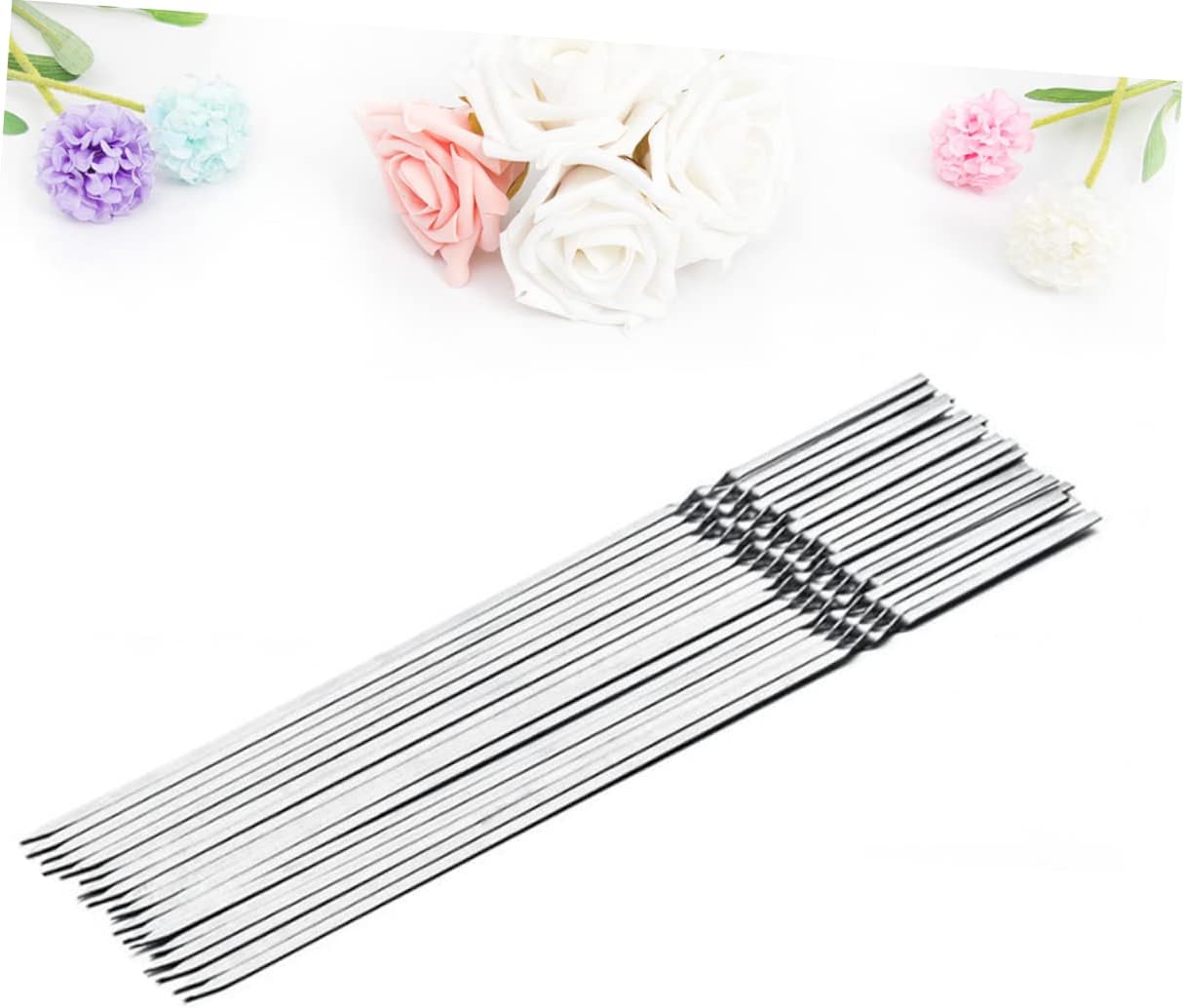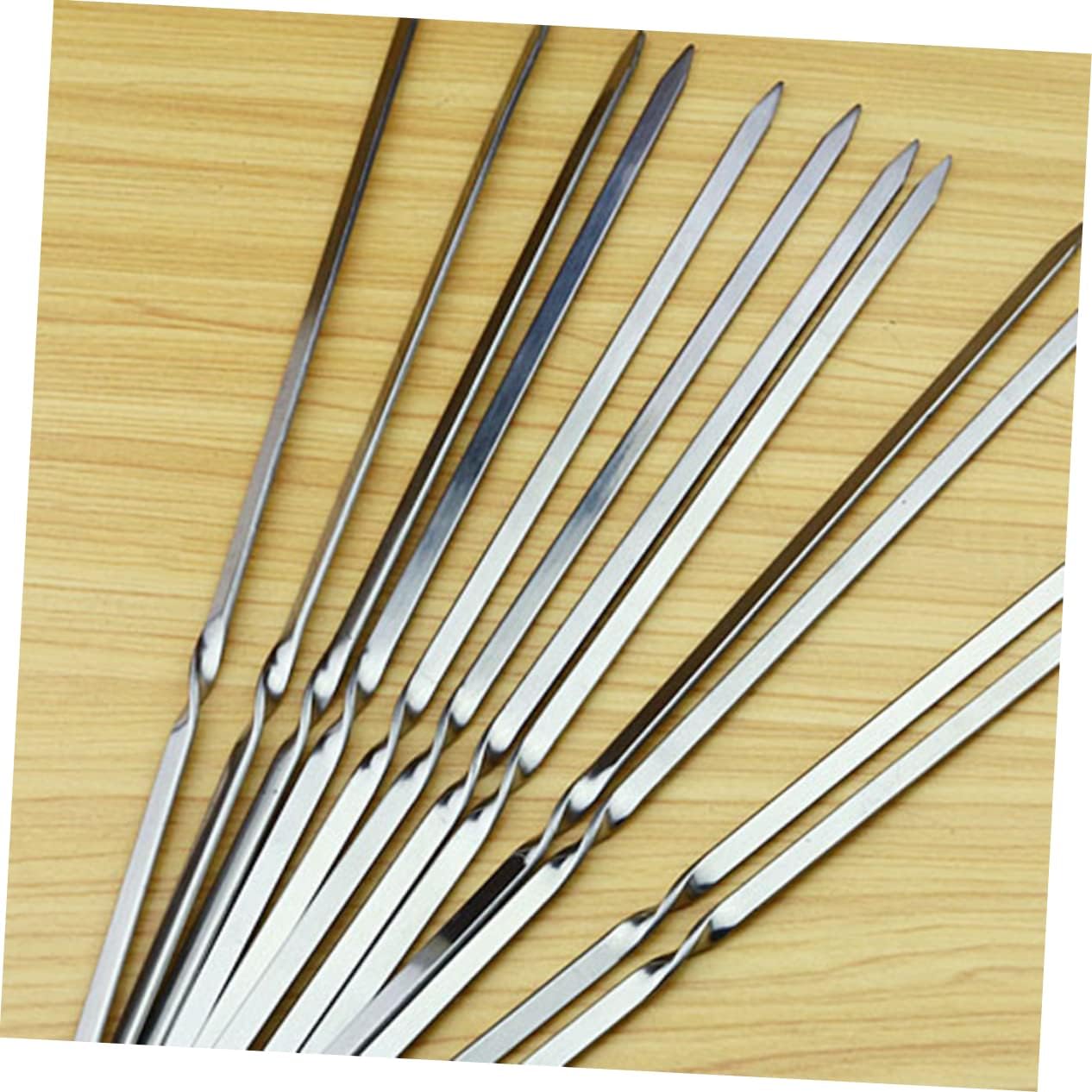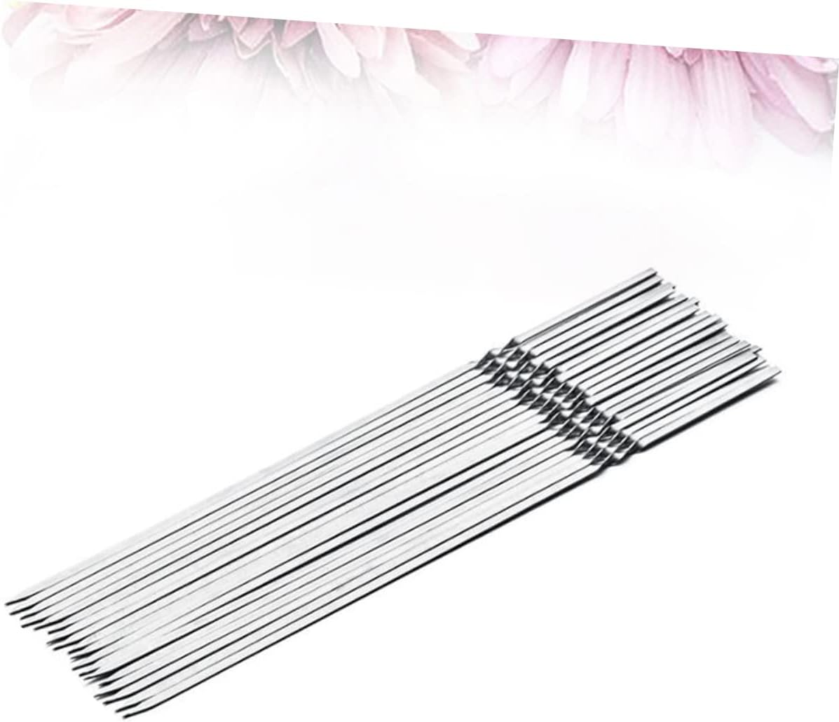 Package Include 20 x barbecue sticks Characteristics -Color: Silver barbecue stick. -Size: Approx. 35x1x1cm stainless steel barbecue bar. -Material: Stainless Steel. - Unique shape design prevent your food from spinning/rolling and it makes getting an even cook easier reusable BBQ skewer. - Adopting stainless steel design for reused barbecue skewer. - Made from food grade stainless steel, contain no harmful chemicals that leach into your food, it is rust- , heavy duty stainless steel barbecue stick. - 35cm long size design prevents people from getting burned easily when grilling. - Suitable for outdoor BBQ party, barbecue restaurant, camping.Goods Informationstainless steel barbecue bar Included 20pcs barbecue special sticks, and all of these sticks are made of stainless steel material.barbecue skewer No worry about burned stick destroy the meat's taste anymore.stainless steel barbecue stick Suitable for BBQ lovers and home BBQ party holders.barbecue stick Special shape and wide blades makes your cooking