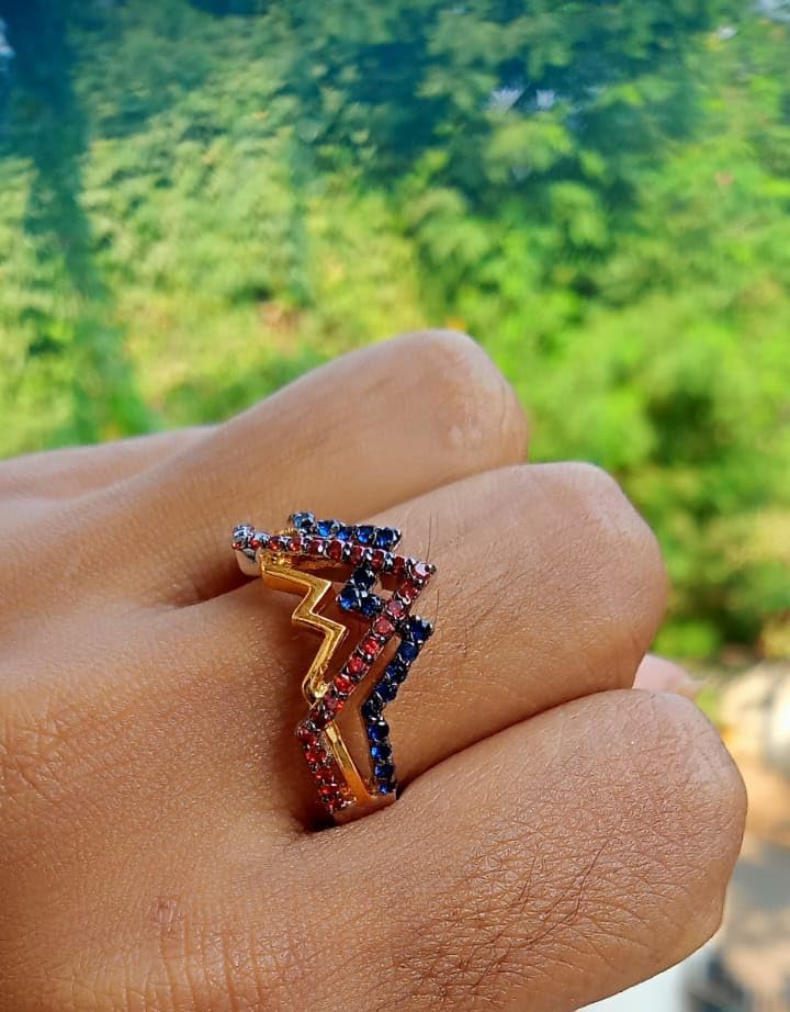 Women's Round Shape Simulated Blue Sapphire & Simulated Red Garnet Wedding Engagement Wonder Women Collection Ring it's best gift for your loved once.