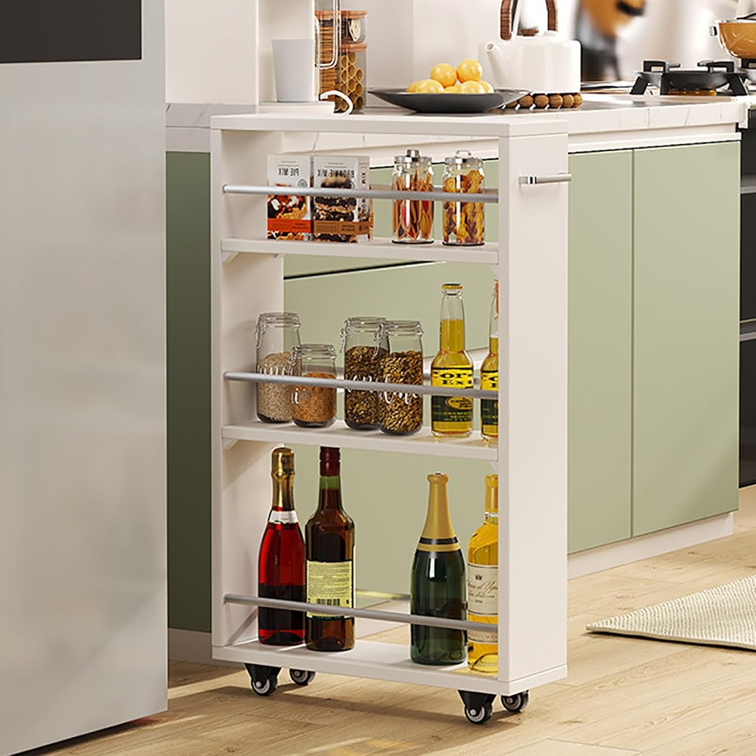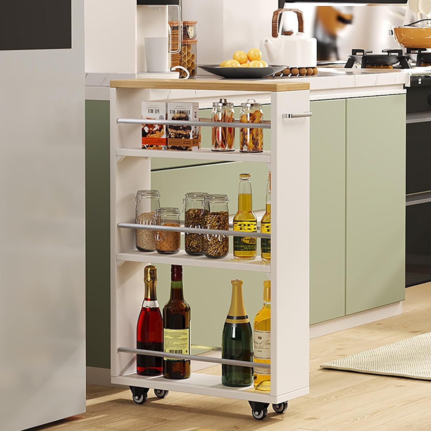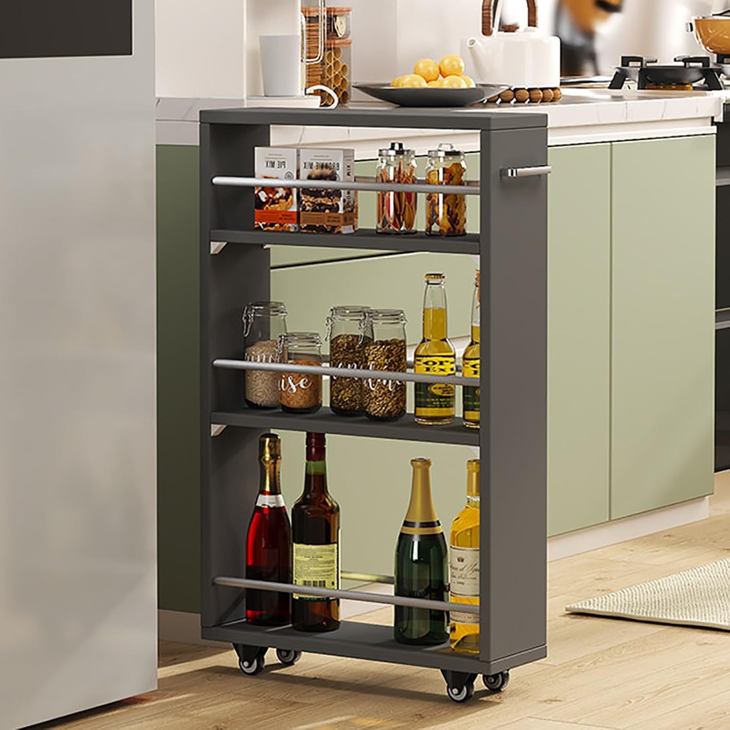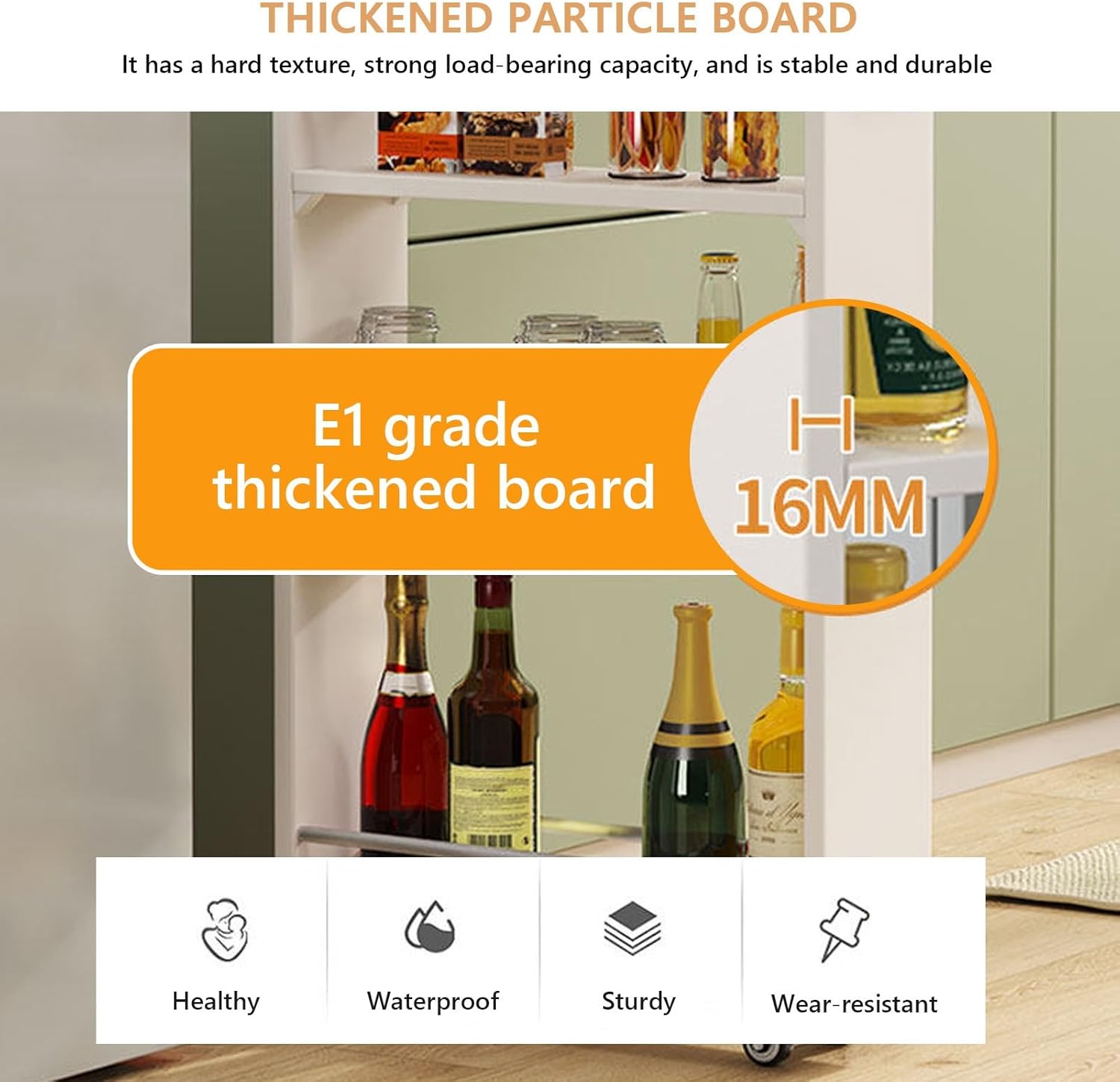 This slim storage cart is designed for narrow spaces. It can be placed in the gap between cabinets and refrigerators or other narrow spaces, helping you conveniently organize items and say goodbye to clutter.Product Specifications:Product Name: Slim Storage CartMaterial: Thickened environmentally friendly boardColor: White+Wood , White , Khaki , Gray , Black WalnutDimensions: 5.1x17.7x31.7in , 5.9x17.7x31.7in , 7.8x17.7x31.7in , 9.8x17.7x31.7in , 5.1x21.6x31.7in , 5.9x21.6x31.7in , 7.8x21.6x31.7in , 9.8x21.6x31.7inStyle: Simple and modernNumber of layers: 3 layersAssembly required: YesPackage Includes:1x Narrow Rolling Cart