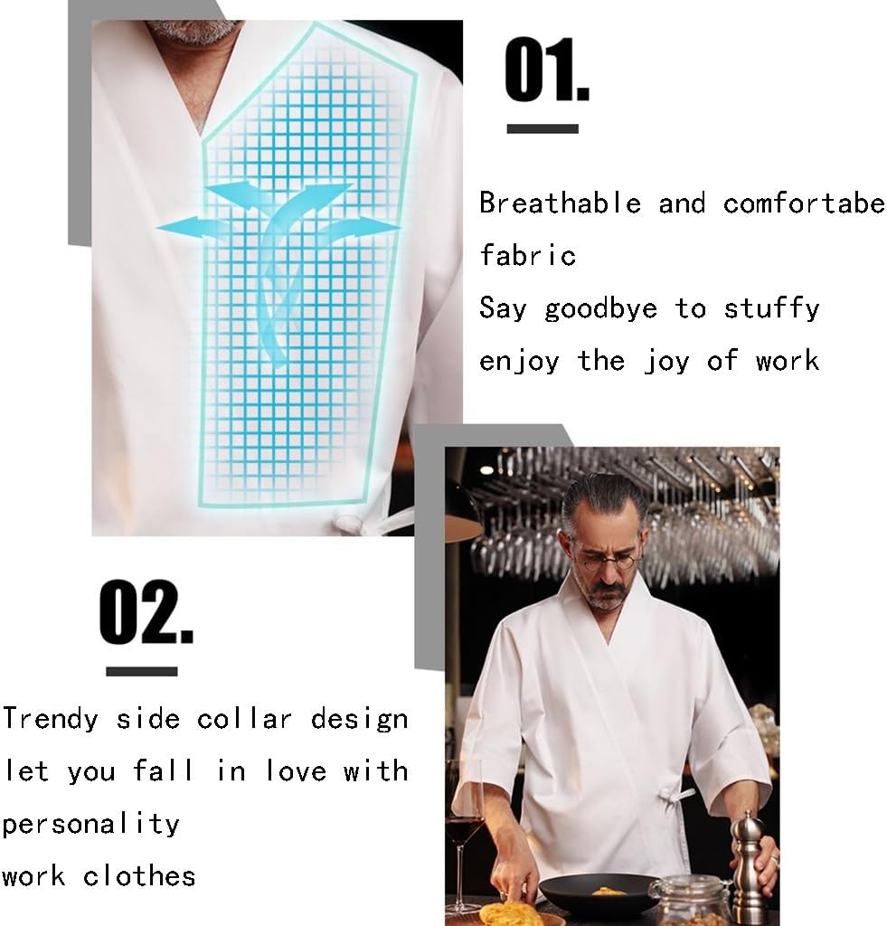 Professional and traditional Japanese sushi chef coat jacket unisexLightweight and smooth fabric, bring your comfort.This chef uniform can be used nor work ,at the same time it great for theme party, school drama or festive dress up.Information:Version: Fitted versionComposition: Cotton polyester blendOccasion: West Point / Pastry / Baking / CateringPackage Contents:1* Sushi Chef CoatSize:Please refer to the last picture for the size chart; Please measure your own size before choosing a size!If you have any questions, you can contact us via email and we will reply you within 24 hours.