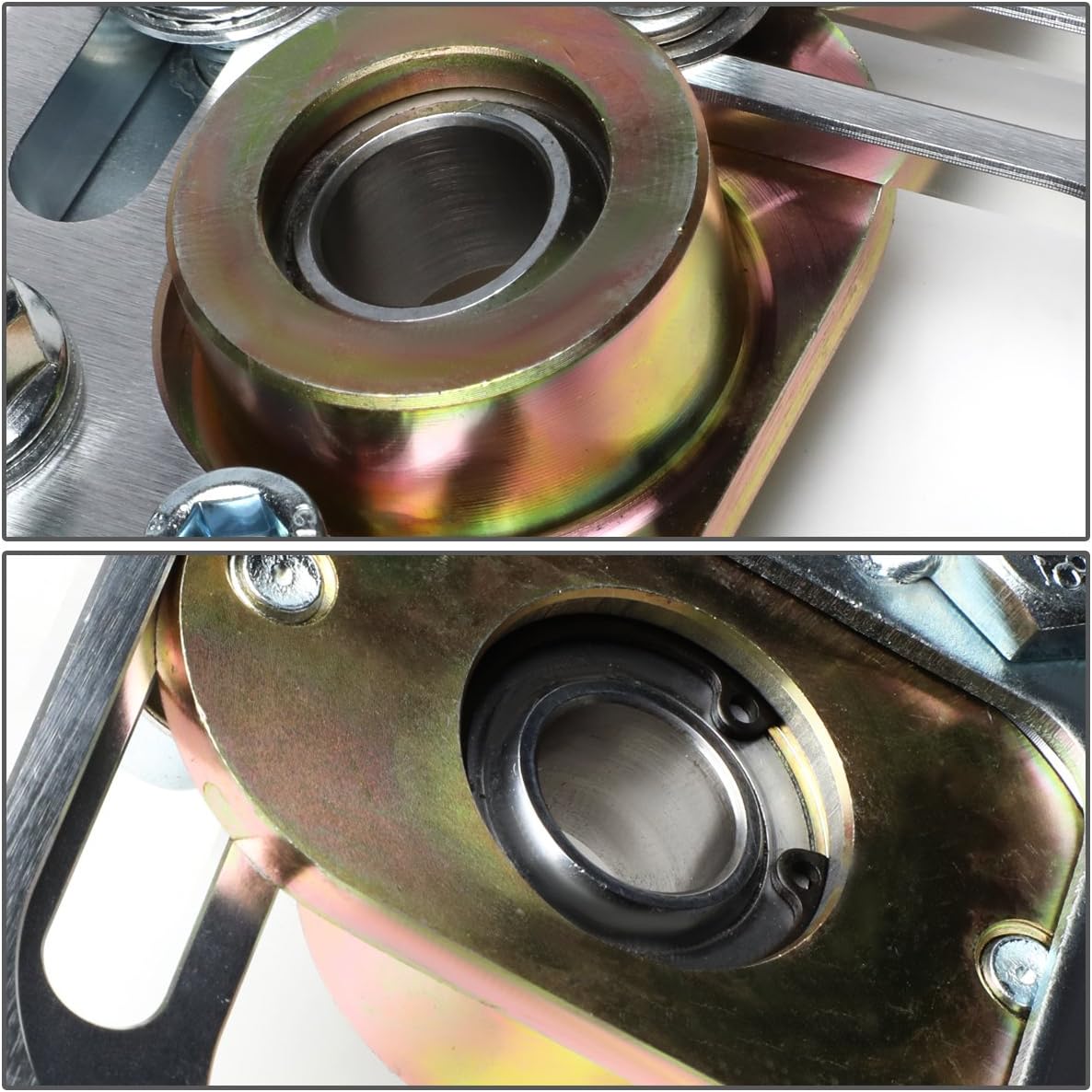 Upgrade your mustangs suspension with our billet Aluminum Camber Plate. Eliminates slop by replacing the factory rubber bushings with a spherical bushing. Allows for adjustment of camber and caster for improved wheel alignment.Package Included: 1 X Pair of Front Camber / Caster Plates(Left & Right)Hardware as Shown in the Picture AboveThis product is compatible with:90-93 Ford Mustang
