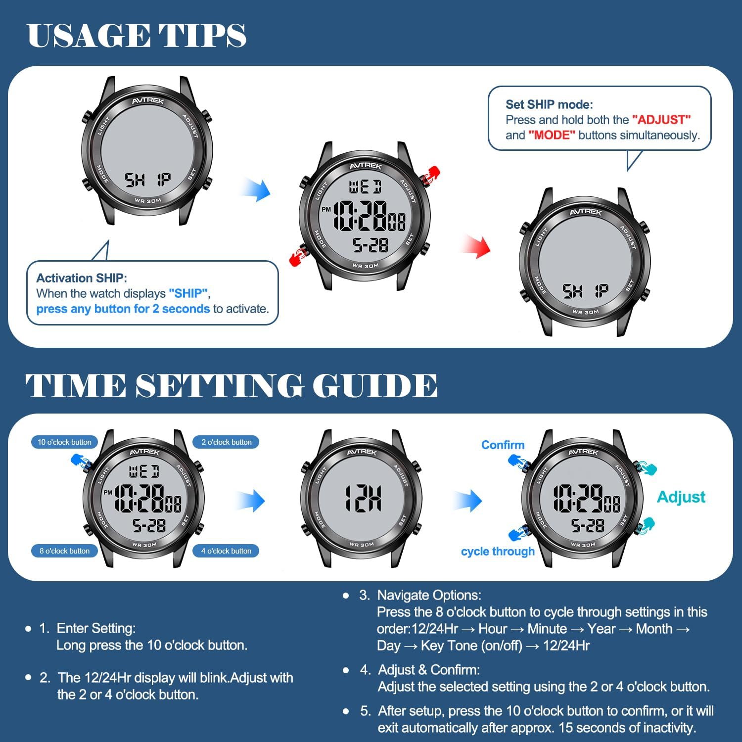 | Additional Features | 5 Alarms, Light Up, stopwatch and countdown |