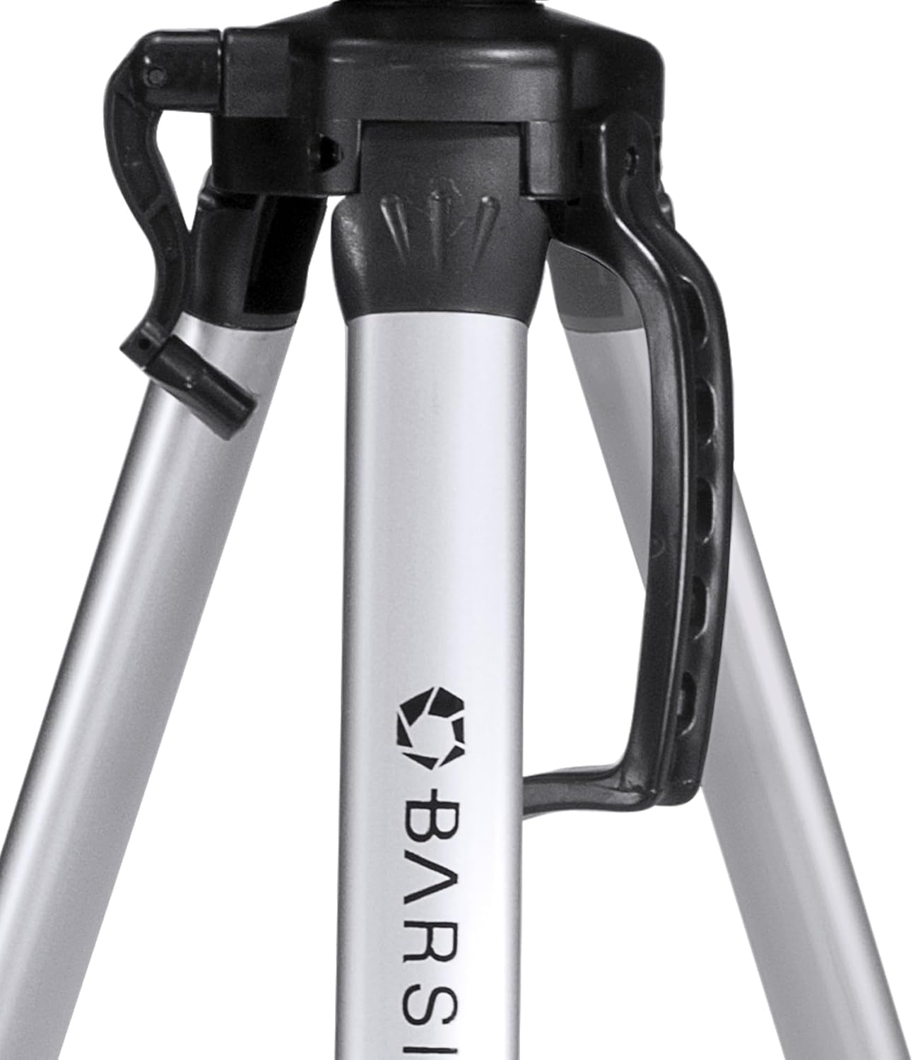 The Barska Deluxe Tripod is a lightweight aluminum tripod that features a bubble level, large knurled panning handle and large tilt handle to make precise adjustments. Whether your interest is sports, bird watching or stargazing, you'll appreciate the built-in quick release that helps you set up or pack up in seconds. The 3 section tripod legs employ braces for extra sturdiness and flip-locks to help you extend the tripod to its maximum height of 63. 4" or anywhere in between. The center column has a hand crank for height adjustments and an accessory hook at the bottom to hang weighty objects for greater stability.