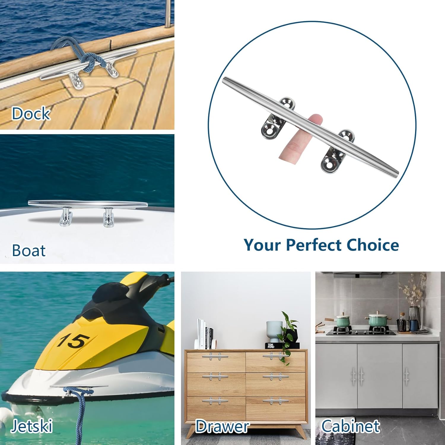 Product Parameters Product Name : Boat Cleat Product Material : 316 Stainless Steel Product Size : 6 Inch/8 Inch/10 Inch Product Scope of Application : The Cleats for Boat Perfect for Beach, Garden, Pool, Coastal Decorations; Use As Cabinet Pulls,Towel Hooks Outdoors, Rustic Coat Hanger, Curtain Tie-Backs, Nautical Coat Hooks, Boat Cleat Wall Hook, Boat Cleat Towel Rack, Boat Cleat Cabinet Pulls, Boat Cleat Hooks, Boat Cleat Decoration.Two Screw Mounting Options are Available. Package Includes: √ Boat Cleats √ Backing Plates √ Bolts √ Screws