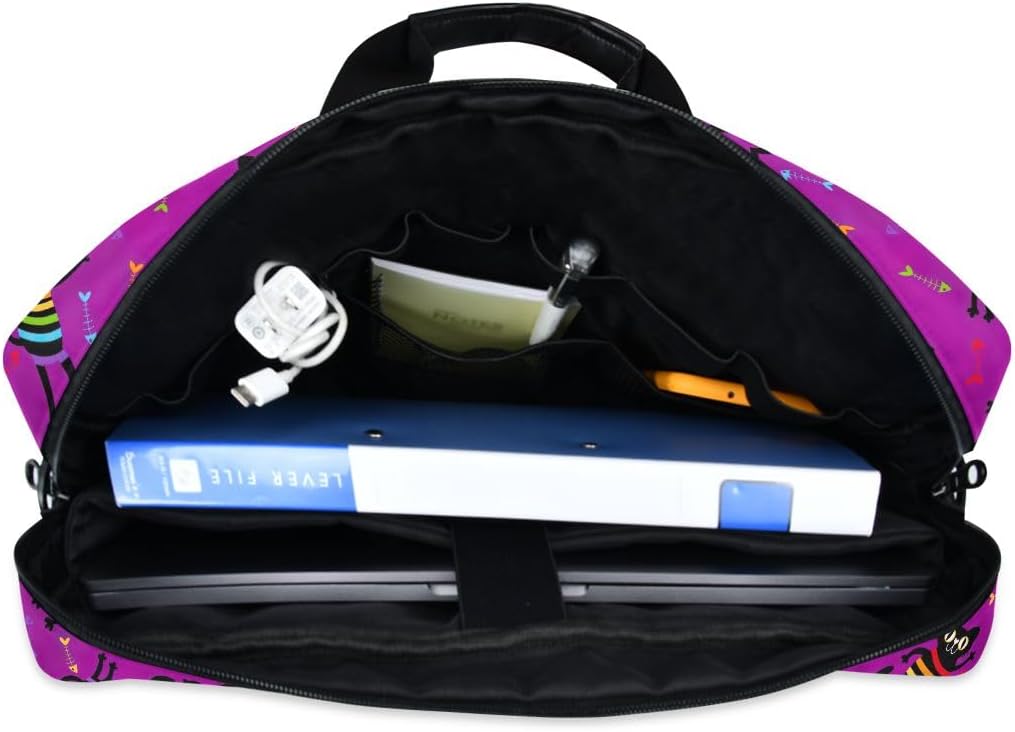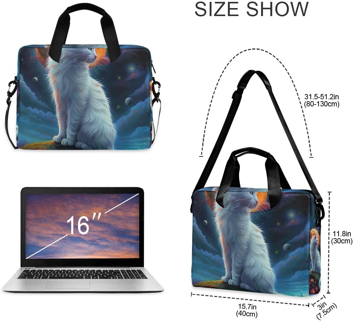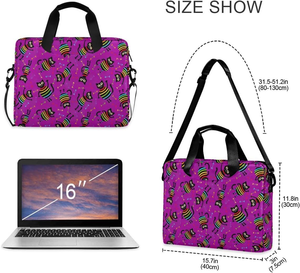 Material: Polyester Dimension: 15.7 x 3 x 11.8 inch / 40 x 7.5 x 30 cm (L x W x H) Length of the Shoulder Strap: 31.5 - 51.2 inches / 80 - 130 cm Best Uses: Work, Commuting, Travel, Business Trip, College Storage Spaces of the computer bag 1 Laptop Compartment: Independent compartment for 13 inches/14 inches/15 inches/16 inches laptop Protecting your device from vibration, dust, shock etc. 1 Main Compartment: Storing books, folders, magazines, umbrella and various items Internal Pockets: Storing pens, keys, glasses, mouse, chargers, business cards, passport, tech accessories, etc. Various Ways to Use: Tote bag, Handbag, Crossbody Bag Removable and Adjustable Shoulder Strap: Non-slip shoulder pads to prevent shoulders from being strangled. Soft Leather Handle: Comfortable handle allows long-time carrying. The stylish pattern design makes this computer shoulder bag ideal for men and women on their business trips, daily work, travel, college. It is a nice gift on birthdays, Valentine's Day, Christmas, Thanksgiving, Mother's Day, Father's Day, Halloween, etc.