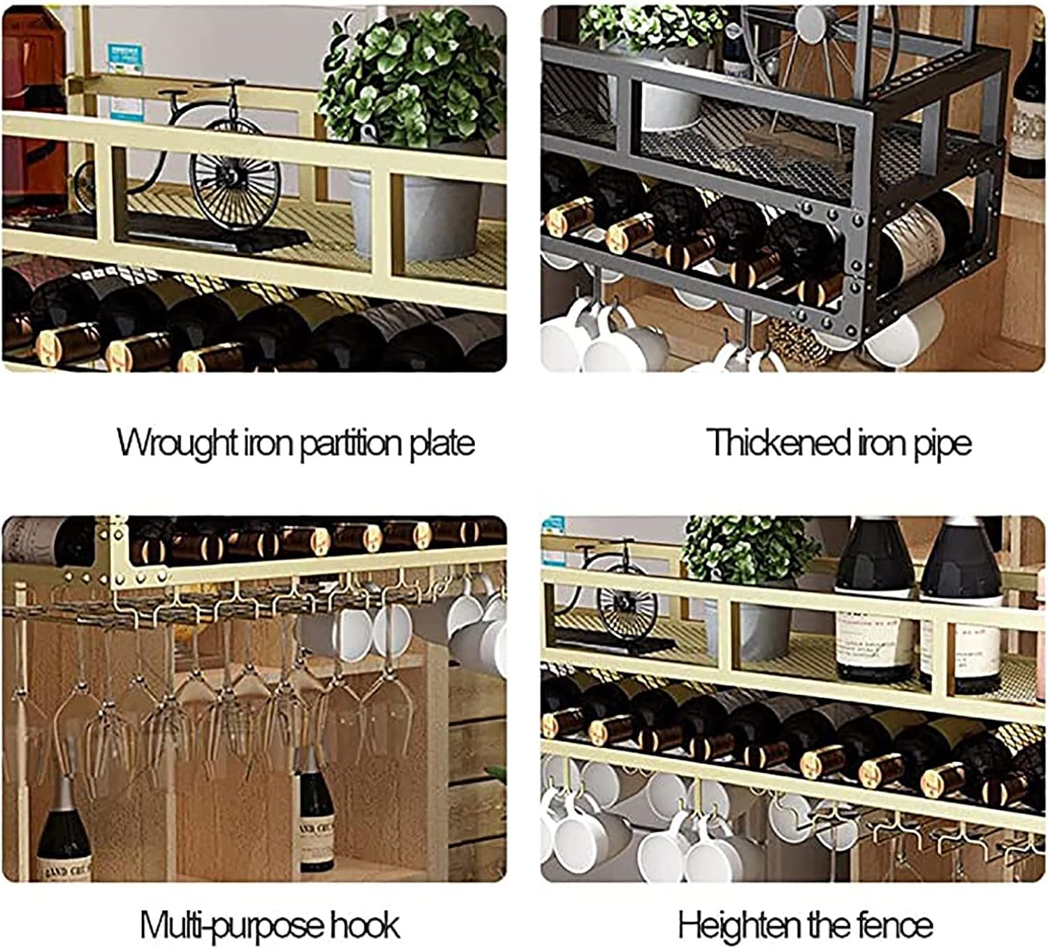 The ceiling Storage Rack is very suitable for decorating all kinds of messy rooms. It has large storage space and is very practical. It is a must-have decoration for every room.Wide Application-It can be used as a wall decoration in kitchens, restaurants, food storage rooms, wine cellars and bars. The ceiling wine rack is suitable as a birthday, anniversary, Christmas and New Year gift for family or friends.