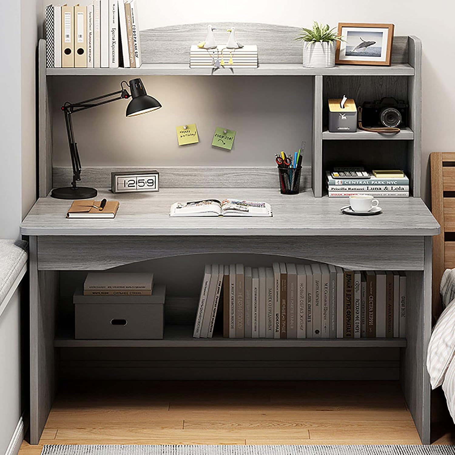 Computer Desk with Shelves, Writing Desk PC Table Workstation for Study Home OfficeHigh-quality DesktopThe desktop is waterproof, scratch-Resistant and heat-Resistant. An easy wipe will remove stains.Partition storageThe diverse storage rack design can easily accommodate laptops, keyboards, books, documents, desk accessories, etc., making it convenient for you to organizeMore Stable Designcomputer table with extra crossbars below desk increased its stability.Small PC Laptop TableThis modern computer office desk with shelves is designed for multi-purpose. It could work perfectly as a study desk, computer desk, home office desk, gaming desk whether you need a desk for study room, dormitory, living room, or bedroom.Specifications:Material: MDFDimensions: 80/100x48x120cm (31/39x19x47inch), 80x45x105cm (31x18x41inch)Application scope: study, office, living room, bedroomPackage Include:1 x Computer Desk with Shelves1 x Accessories Kit1 x Instructions