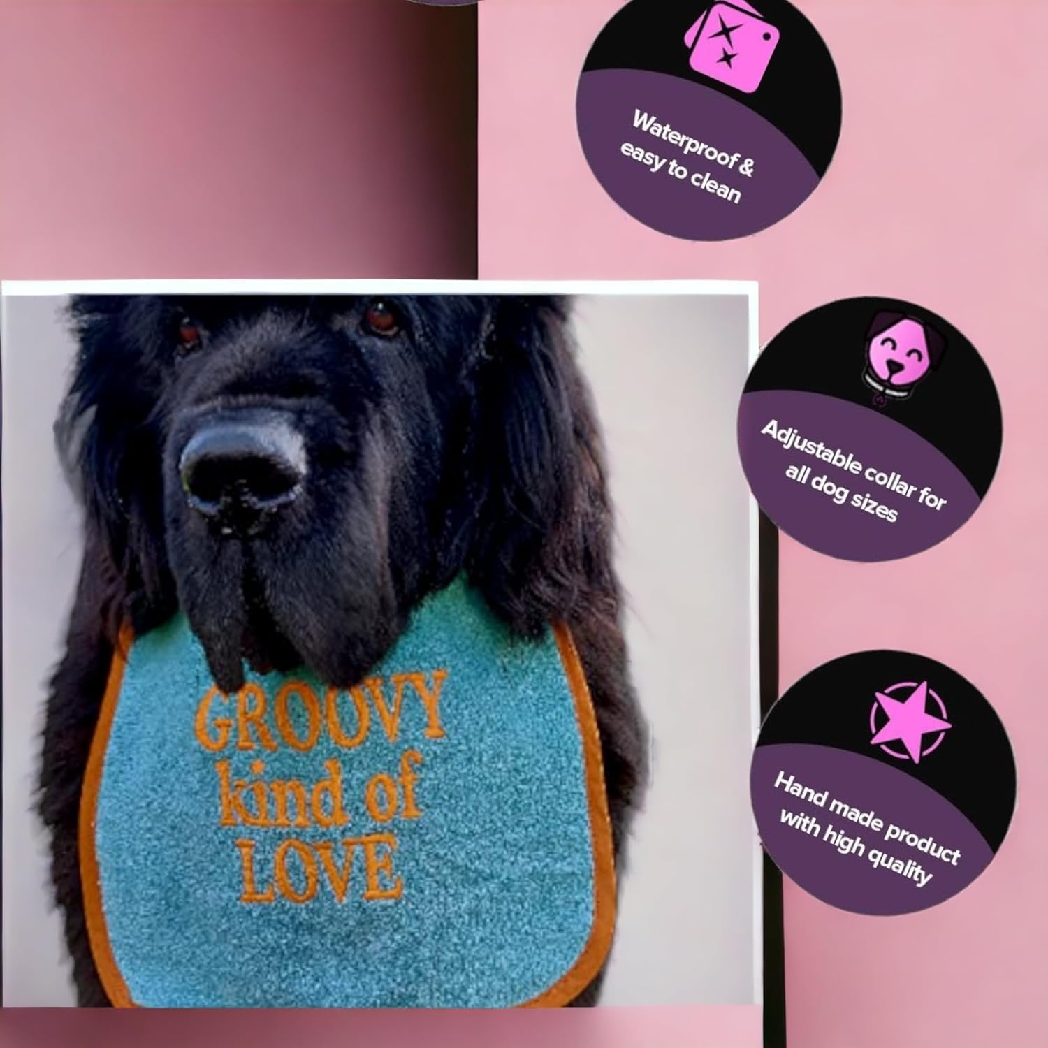 Elevate your pet's style with DoggiesWorld's 'Groovy Kind of Love' personalized dog bib. Handmade with love, you can choose your preferred bib and embroidery colors, as well as the perfect size for your furry friend. These bibs are not only stylish but practical, complete with a waterproof backing for extra protection. The comfortable, adjustable neck strap makes them suitable for pups and adults alike. They're easy to clean, suitable for all dog breeds and ages, and come with professional embroidery and sewing. Express your pet's unique style with a variety of colors. Order now and let your pet show off their personality!