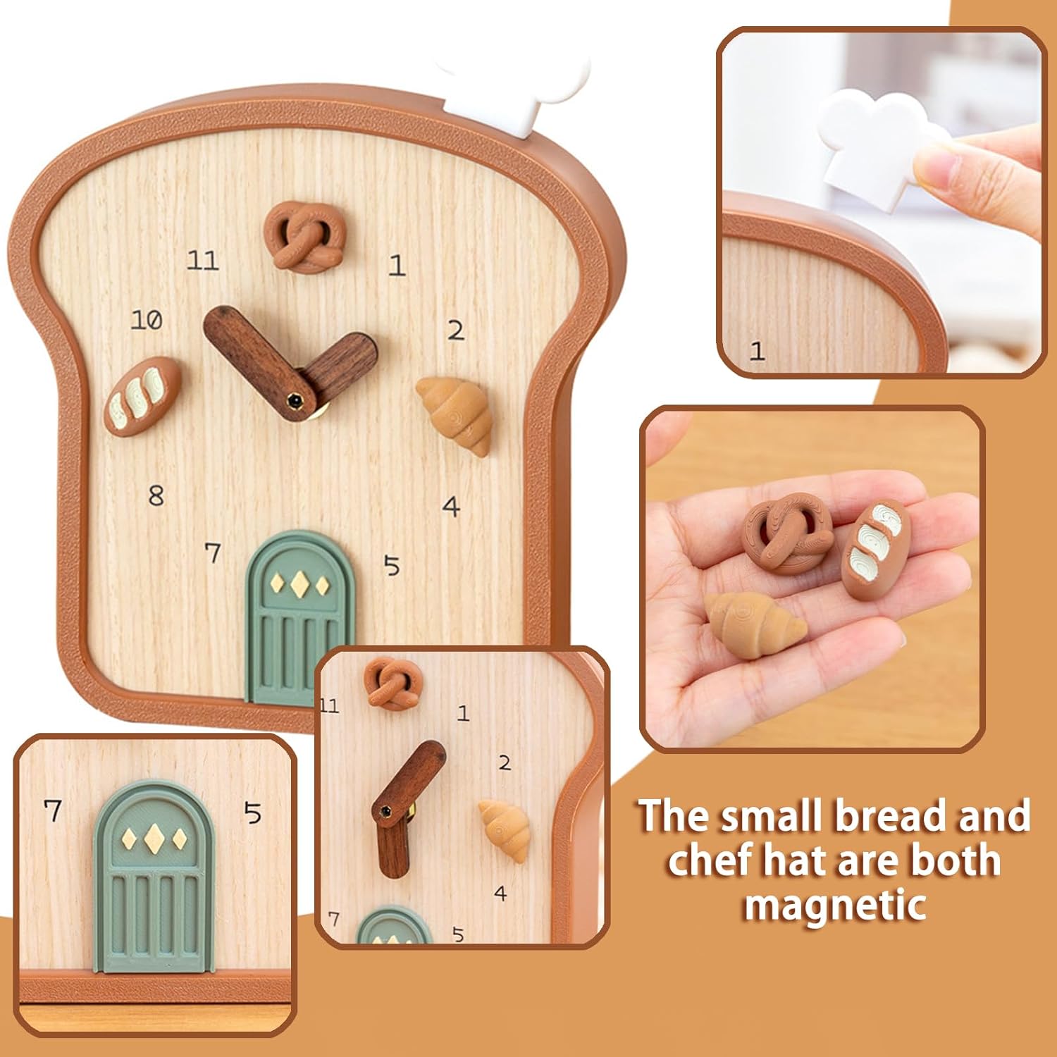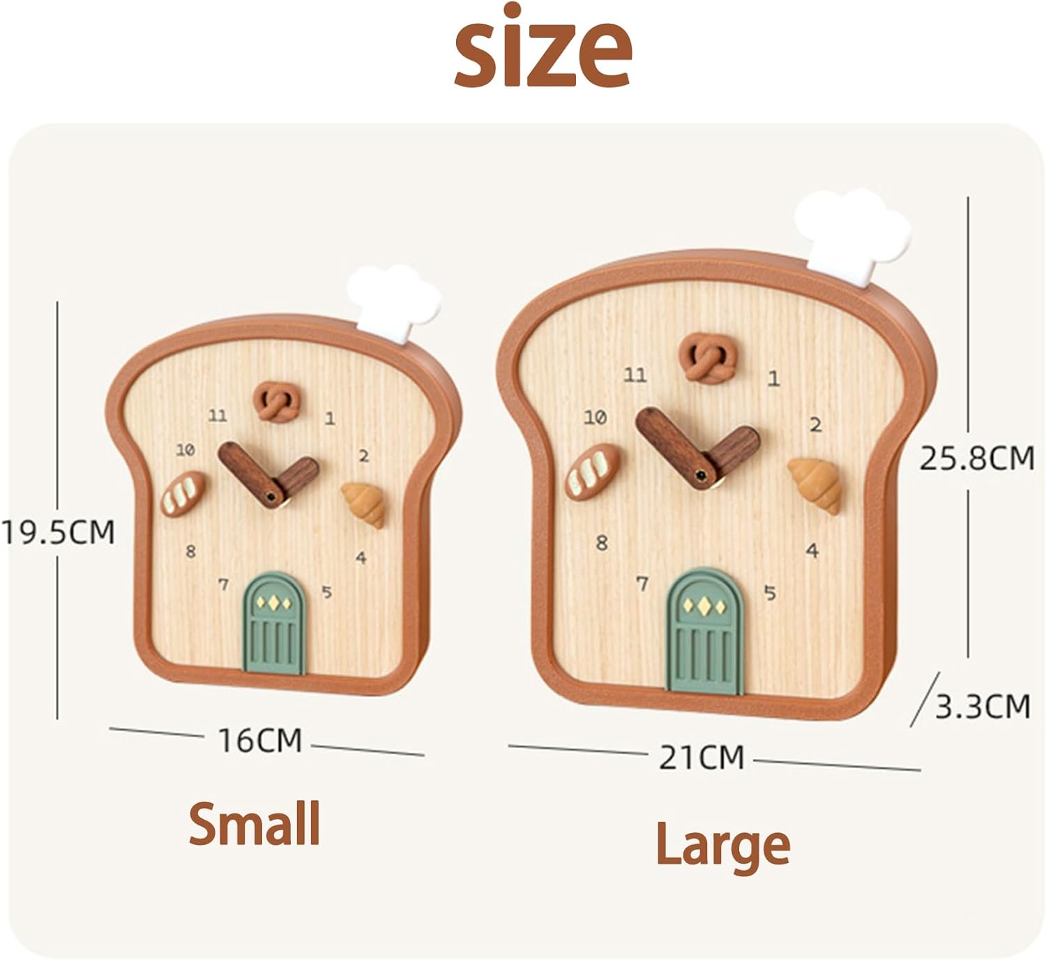 Bring a touch of playful charm and minimalist elegance into your home with the Creative Toast Wall Clock – a delightful fusion of art and functionality that’s perfect for modern living spaces. Designed to resemble a slice of toast with a soft cream-toned finish, this unique desktop and wall clock makes a bold yet adorable statement whether placed on your bedside table, kitchen shelf, study desk, or mounted on the wall.Crafted from high-quality sustainable wood, the clock offers a natural, smooth texture that feels both warm and durable. The minimalistic design features clear, easy-to-read markings and sleek hands that make timekeeping intuitive without overwhelming the visual aesthetic. Its compact size and neutral color palette blend seamlessly into a variety of decors – from kawaii and boho to Scandinavian and rustic.One of its standout features is the silent quartz movement, ensuring a peaceful, tick-free environment that enhances your concentration, sleep, or relaxation time. No more annoying ticking sounds – just quiet, stylish precision. Whether you’re working in your office, winding down in your bedroom, or cooking in the kitchen, this clock brings tranquility and style.This versatile clock isn’t just for timekeeping – it’s a creative art piece and thoughtful gift. Surprise a friend, teen, or loved one with this cute and imaginative accessory that’s both functional and decorative. Ideal for birthdays, holidays, housewarmings, or simply to brighten up someone’s space with a unique and lovable touch.