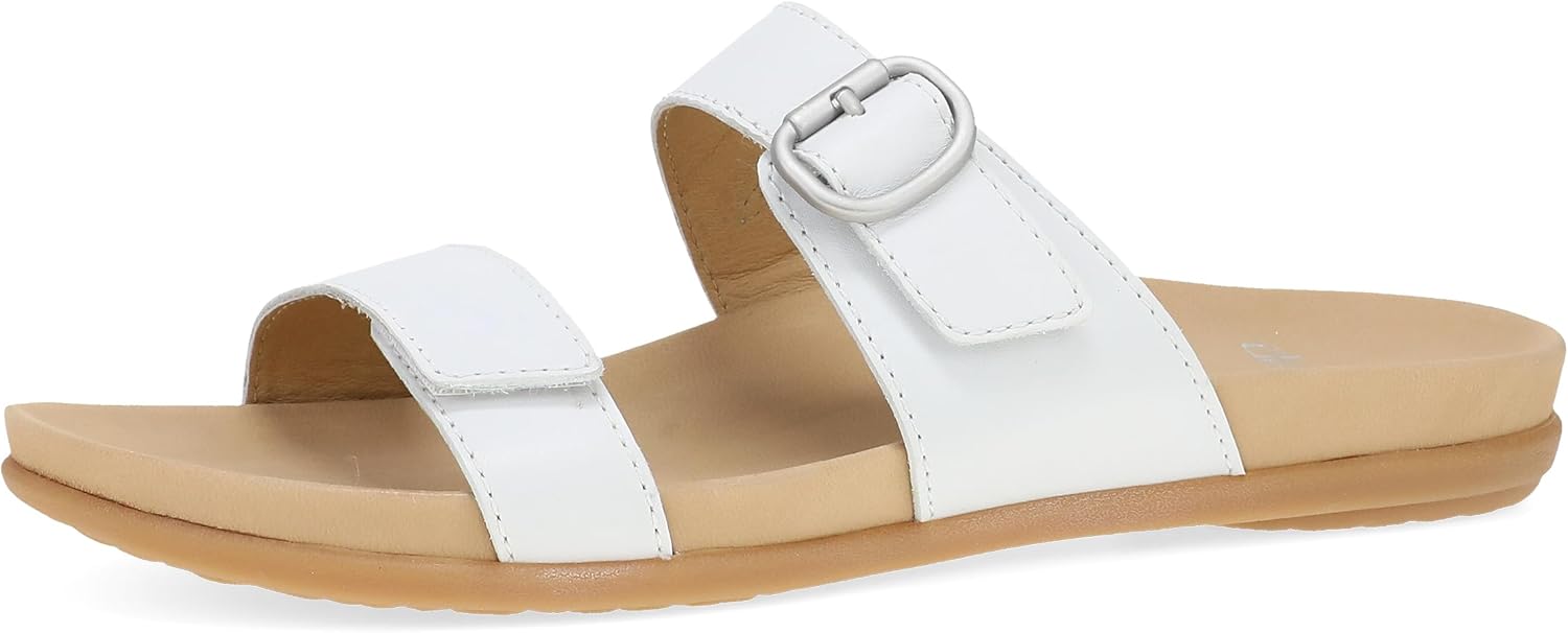 Step into support with Justine, a simple two band adjustable hook and loop sandal made for both summer dresses and casual all-day wear.