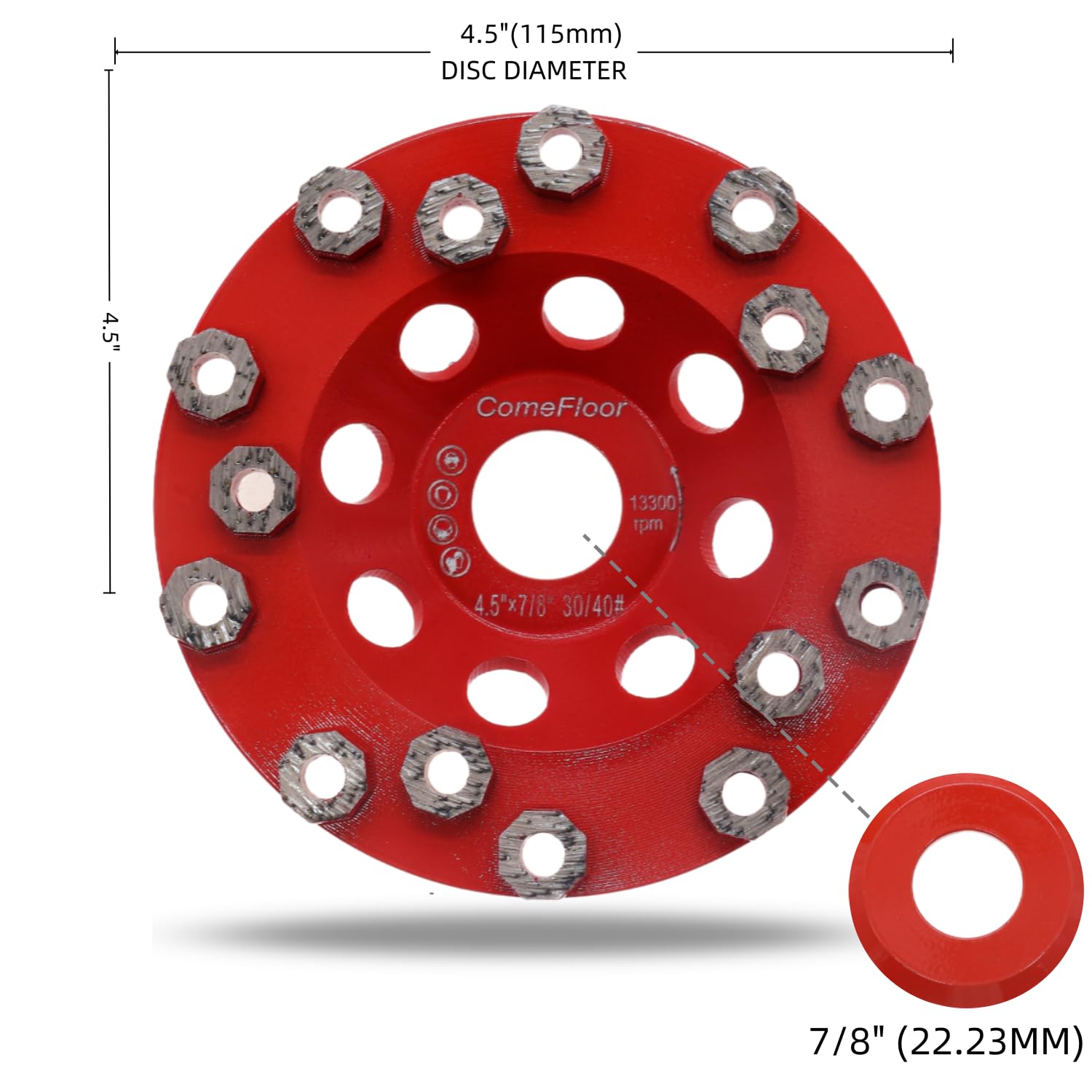 Diamond Grinding Cup Wheel for Hard Concrete Floor, Epoxy Coating Removal, 15 Aggressive Honeycomb Segments, 4.5 Inch 7/8" Arbor, 30/40 Grit