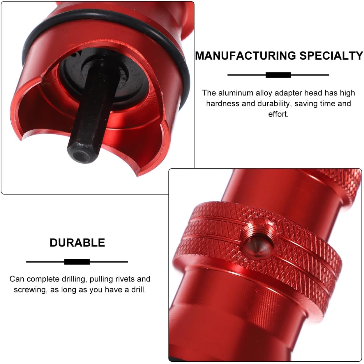 Package List 1 x rivet adapter 1 x handle 1 x wrench 3 x rivet heads(φ2.4mm,φ3.2mm,φ4.0mm) Features -Material:Aluminum alloy insert nut adapter tools -Size:17.50X4.50X4.50cm/6.88X1.77X1.77in rivet adapter -Color:Red automotive tools -Can complete drilling, pulling rivets and , as long as you have a drill electric riveter tool. -The cordless rivet tool adapter can work with the electric drill, cordless riveting drill tool cordless rivet adapter. -Making your drilling process more , saving labor and for easy use riveting casting tools. -With portable size, easy to carry, , lower noisy, bringing you a using experience nut drill tools. -The aluminum alloy adapter head has high hardness and durability, saving time and effort cordless rivet tool.Goods Informationnut riveter tool This rivet adapter can be combined with various of power tools.insert nut adapter tools Professional manufacturing, high durability, not easy to deform, and can withstand use.electric riveter tool It is a replacement part for cordless riveting tool, safe and reliable