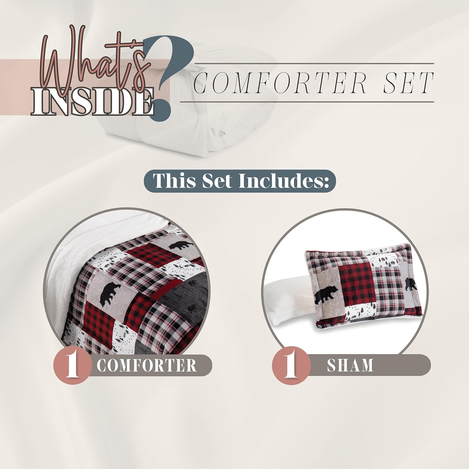 Turn your sleep space into a cozy retreat with our Patch Sherpa Comforter Set. Package will include one comforter and two pillow shams. Twin and Twin XL will include one comforter and one pillow sham. Multiple colors, patterns, and icons for a wintery-lodge style, bringing comfort to your room. Ultra-soft, plush filling with a sherpa reverse to keep you warm on cold winter nights. Double-needle stitching to keep blanket filling in place for an even layer of warmth. Style it with the printed side or if you wish to make your bed look like a cloud, you can use the sherpa side. Fade and stain resistant. Breathable material and machine washable. Machine wash cold with like colors on a delicate cycle. Tumble dry low.