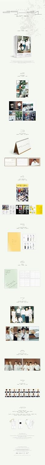 1. PHOTOBOOK size: 150mm x 215mm I 120p 2. DESK CALENDAR size: 210mm x 150mm I 14months 3. 2521 MAGAZINE size: 150mm x 215mm I 20p 4. ILLUSTRATION BOOK size: 100mm x 150mm I 8 sheets 5. DIARY size: 96mm x 143mm I 88p 6. FOLDED POSTER SET size: 420mm x 297mm I 8ea 1set 7. PRINTED PHOTO SET size: 152mm x 102mm I 2ea 1set 8. ID PHOTO SET size: 70mm x 90mm I 7ea 1set 9. DIGITAL CODE SET DIGITAL CODE size: 34mm x 79mm | About 53min SILVER CHAIN Size : 110mm
