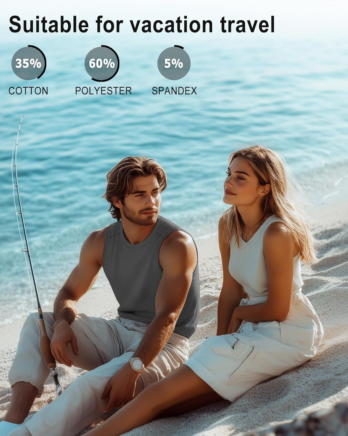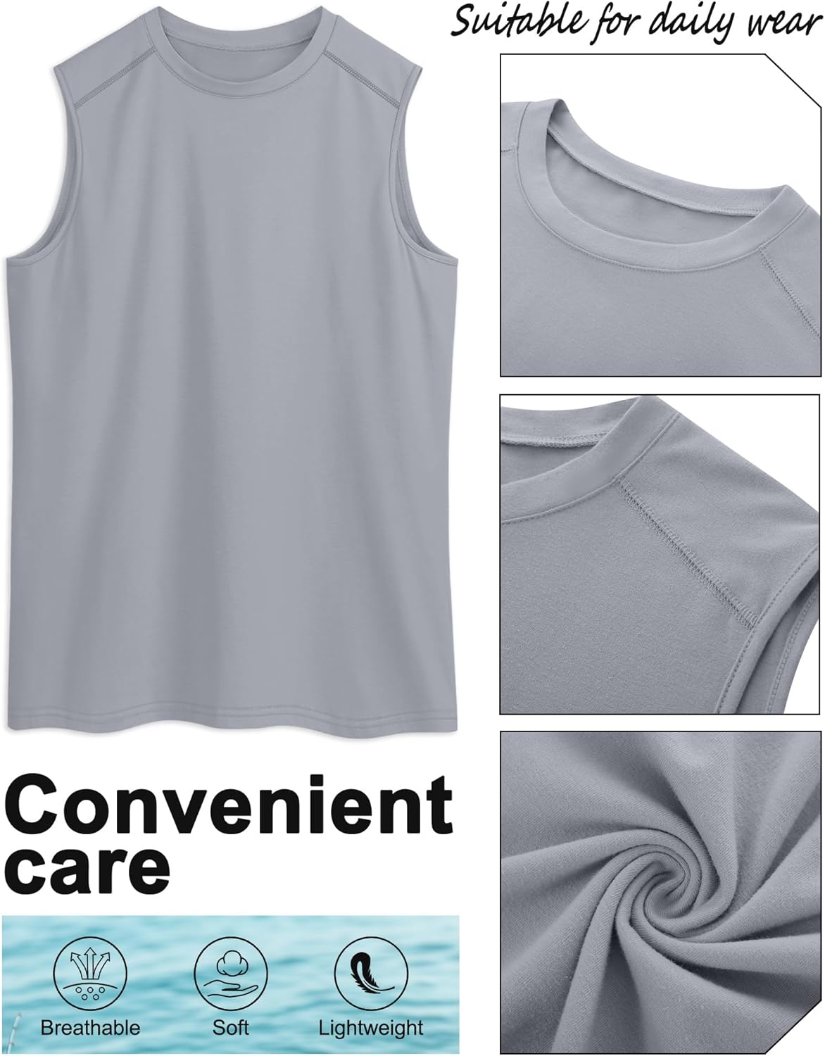 Features: Multiple wear occasions: Enjoy the summer with our casual, loose fit men's tee shirts. They are ideal for workouts, running or just hanging out in the gym. easy to maintain: Our tank tops for men are easy to maintain. They can be machine washed or hand washed in cold water and hung to dry after cleaning. No need for bleaching or dry-cleaning. Specifications: Material: 60% Polyester, 35% Cotton, 5% Spandex Package includes: 3 x Men's Sleeveless Tank Tops Notes: Manual measurement, please allow slight errors on size. The color may exist a slight difference due to different screen displays. Please wash dark colors separately, and bleaching is not allowed.