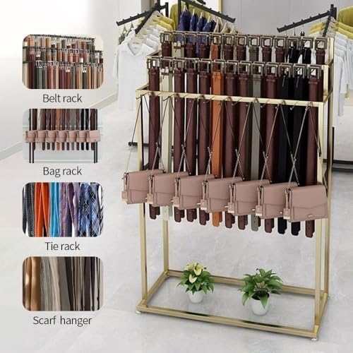 Introducing our Freestanding Belt Rack Floor, a perfect blend of functionality and style for your home or retail space. This versatile organizer is designed to meet your storage needs, whether you're looking to declutter your bedroom, enhance your closet organization, or create an eye-catching display in your store. Available in multiple sizes—24", 28", 32", 39", 47", and 59"—this rack accommodates various accessories. With up to 60 hooks, it provides ample space for belts, ties, scarves, and headbands, ensuring that everything stays neatly organized and easily accessible. The sturdy metal frame guarantees durability, while the sleek painted finish protects against scratches and fading, keeping your accessories looking their best. Imagine transforming your cluttered closet into a well-organized haven, where every item has its place. Whether you prefer a modern black, elegant white, or luxurious gold finish, this rack seamlessly blends into any decor style, adding a touch of sophistication to your space. Assembly is straightforward, allowing you to set it up quickly and start enjoying its benefits right away. This freestanding organizer is not just practical; it elevates your space, making it perfect for personal use or as a retail display that attracts customers. Upgrade your storage solutions with our Freestanding Belt Rack Floor and experience the convenience it offers. Say goodbye to tangled accessories and hello to a beautifully organized space.