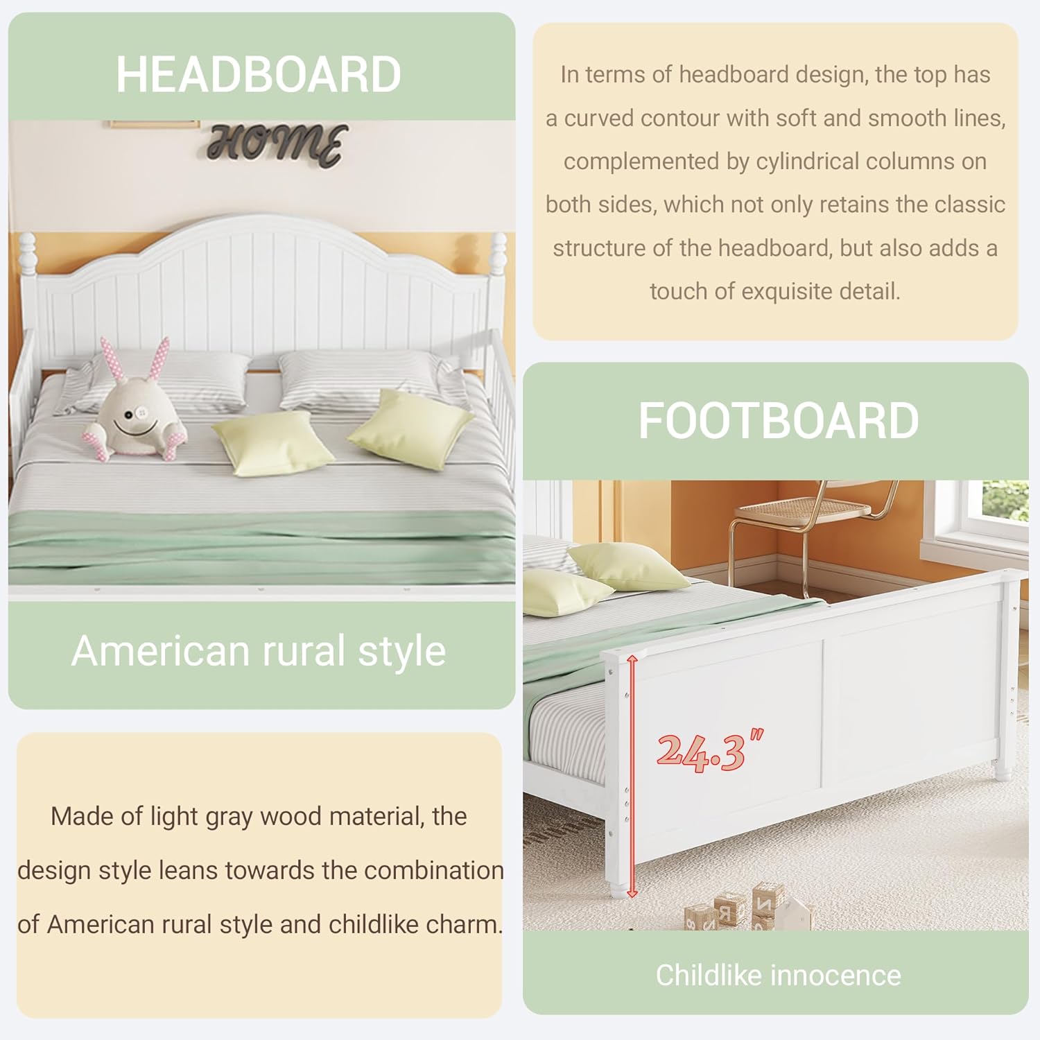 | Other Special Features of the Product | 6.7-inch under bed storage, Roman Column Design, Slats Support, with Headboard and Footboard, with full-length guardrails that are detachable |