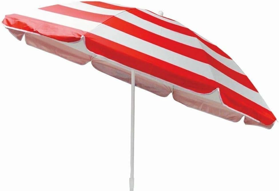patio umbrella with elegant design, is a perfect and essential for summer or sunny days to shade sunshine, apply to the yard, beach, square, garden and patio shops like cafe, restaurant, swimming pool.> Product Description> This Easy to Assemble Parasol is Manufactured with Grey Powder Coated 2pc Steel Pole & 170T Polyester. Parasol is Strong and will Last you Long.> UPF40 UV Protection Covers with 8 Steel Ribs & Air Flap. It Has an Easy Crank & Tilt Mechanism to Open/Close> Parasol is Not Suitable to be Left Outside in Extreme Weather Conditions. Colour of the Parasol Red Stripe.> Parasol Size: 1.7m . Overall Height: 1.9m . Steel Pole: 19/22mm. Great features of the Parasol is it has an Adjustable Pole. Height of the Parasol is 190 cm and Tilting Mechanism.> This Parasol is Perfect for Taking it With you in the Holiday / Beach / Picnic or Just Enjoying the Beautiful Sunny day in the Garden. Include Nylon Carry Bag for Easy Transportation.
