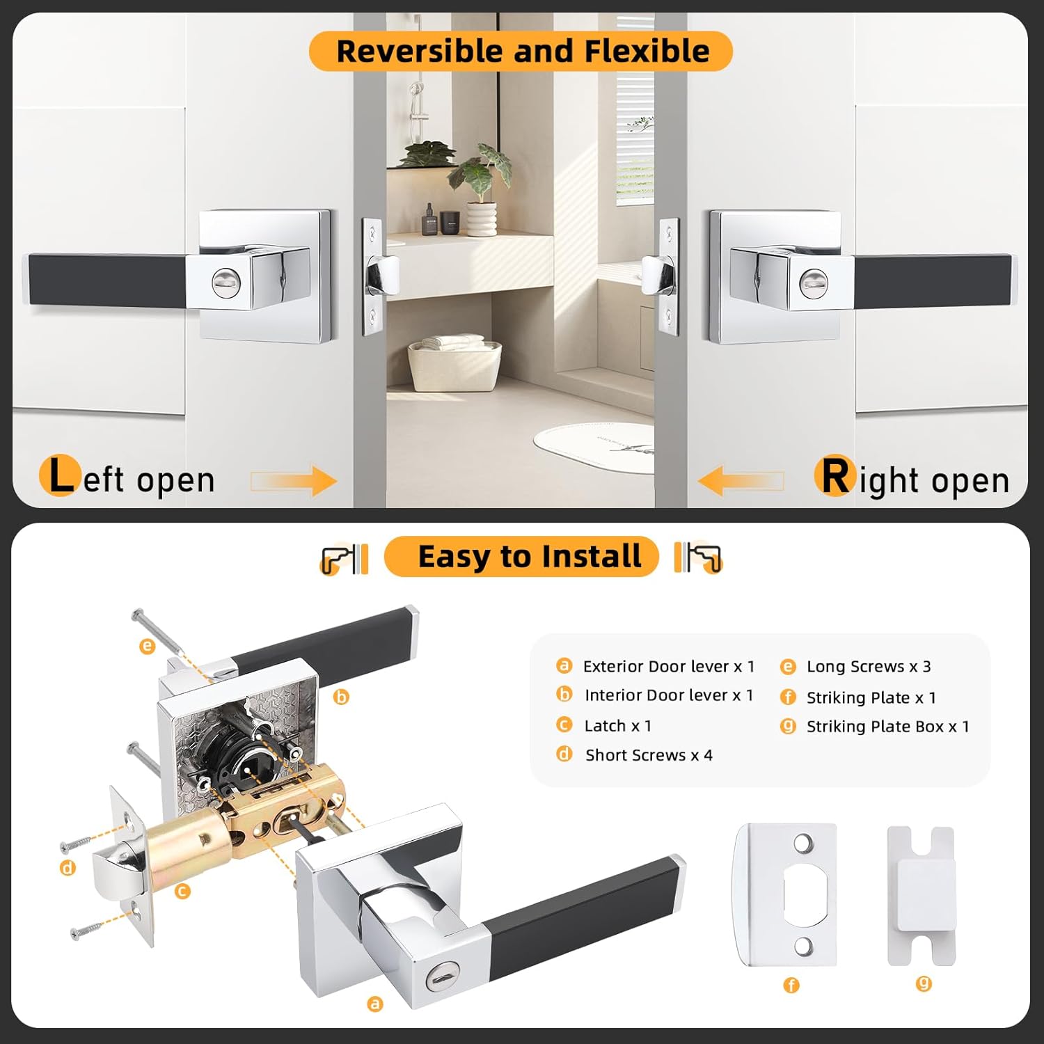 | Included Components | Exterior Lever, Interior Lever(Knob,Lock), Plastic Dust Box, Strike Plate, 3 Long Screws, 4 Short Screws, Adjustable Latch, etc Installation accessories and Instructions |