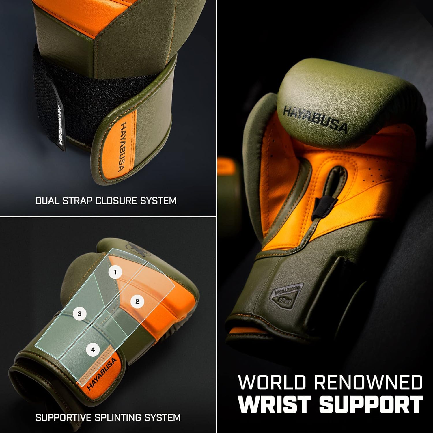 Hayabusa T3 Boxing Gloves Hayabusa has revolutionized the boxing industry for the modern era creating a glove with the perfect balance of protection comfort fit and style T3 Boxing Gloves were designed utilizing a decade of sports science and glove technology research collected throughout partnerships with distinguished laboratories and research centers around the world Some of our notable partners and research collaborations have been the University of Waterloo Kinesiology Department Amide Research Laboratories and St Lawrence College to name a few Glove Technology Hand Ergonomics Dual wrist straps and splinting system work together to keep your wrists aligned with each punch It locks your wrist and hand in place when you strap up keeping them in the perfect position for each strike Crush Zone Padding This technology foam composition provides unparalleled knuckle protection to absorb impacts and dissipate energy so your hands are always ready and protected for the next strike Temperature Regulating Lining T3s ultra soft lining helps regulate your hand temperature keeping them cool and fresh while you train Wipe Away Sweat Thumb No need to remove your gloves wipe your brow with T3s microfibre thumb Vylar Engineered Leather Lab testing revealed Vylar is a superior engineered leather material and even outperformed regular leather in terms of flexibility surface durability and crack resistance which helps T3 provide the resilience you need in a high performance boxing glove Package Contains Two 2 T3 Boxing Gloves One 1 for each hand