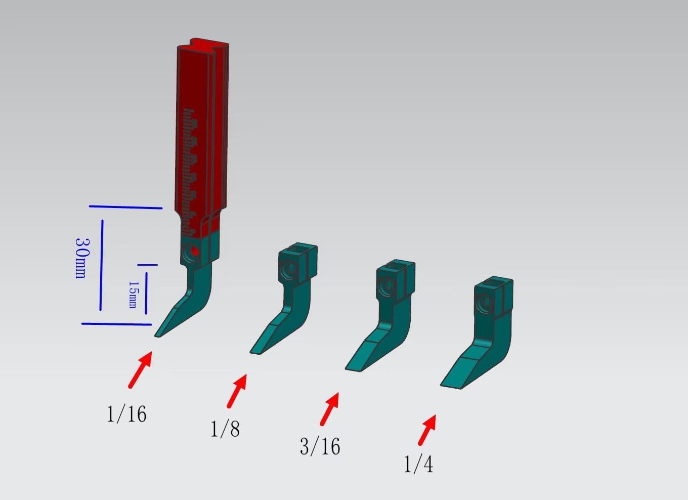 Specifications: Blade Width: ½” (12.7 mm), with optional smaller blades Cutting Depth: up to 1.5” (38 mm) Fence Orientation: Left or right side attachable Blade Lift Mechanism: Forward or reverse facing Material: Die steel body