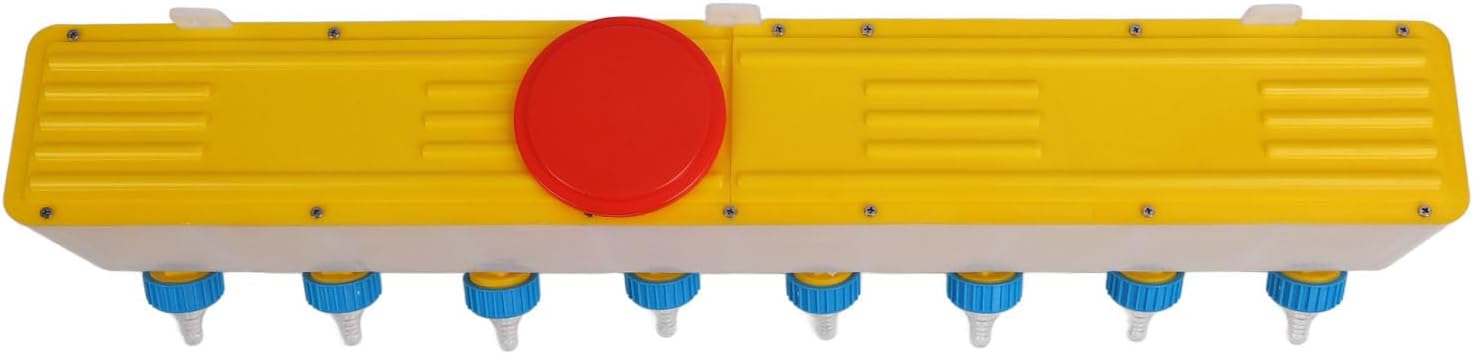 Specification:Item Type: Silicone Lamb Drink Nipples FeederWeight: 1678g/59.2ozMaterial: pp siliconeApplicable Objects: cattle, sheep, pigsFunction: Feeding equipmentUses: To solve the problems of feeding small animals, such as milk, water and Capacity: 10 LType: 8 bit feederProduct Size: 80.5 x 12 x 12cm/31.7in x 4.7 x 4.7inDrop Port: 11.5cm/4.5inNipple Spacing: 10cm/3.9inHow to Use:Install the nipple to use.Package List:1 x Feeder with Lid 16 x Accessories8 x Nipple