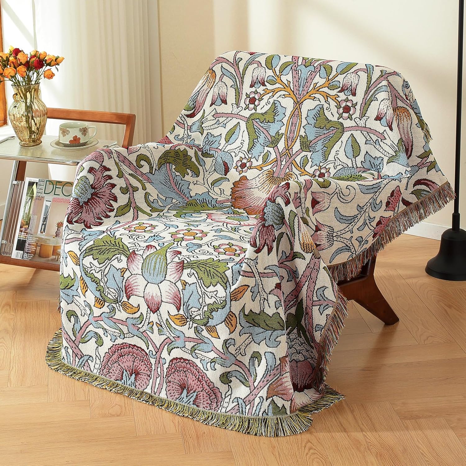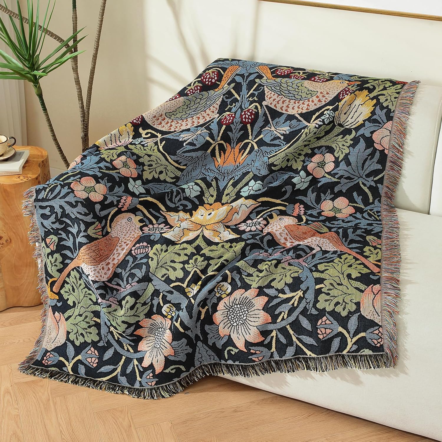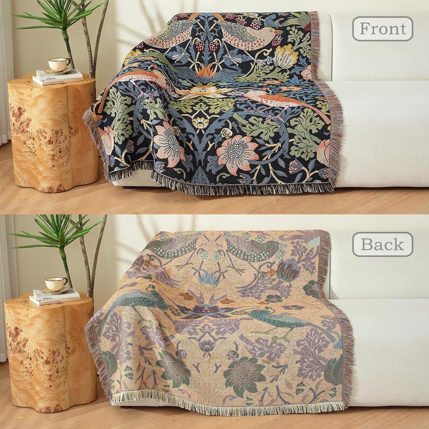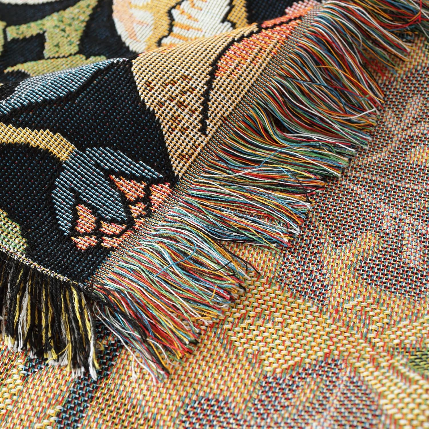 This woven tapestry throw blanket combines artistry with functionality to enhance your living space. Featuring decorative tassels along the edges, this versatile throw adds a touch of bohemian elegance to any room. The intricate woven design creates rich texture and visual interest, making it perfect for draping over your sofa, chair, or recliner. Use it as a cozy blanket during chilly evenings or display it as a stylish bedspread to transform your bedroom. The tapestry-style weaving technique produces a durable, substantial fabric that holds its shape beautifully. This throw also doubles as wall art decor, allowing you to create an eye-catching focal point by hanging it as a decorative tapestry. The tasseled edges add a finishing touch that elevates the overall aesthetic. Whether you're looking to add warmth, protect your furniture, or introduce artistic flair to your home, this woven throw blanket serves multiple purposes with style. Its timeless design complements various interior decorating themes, from traditional to contemporary settings.