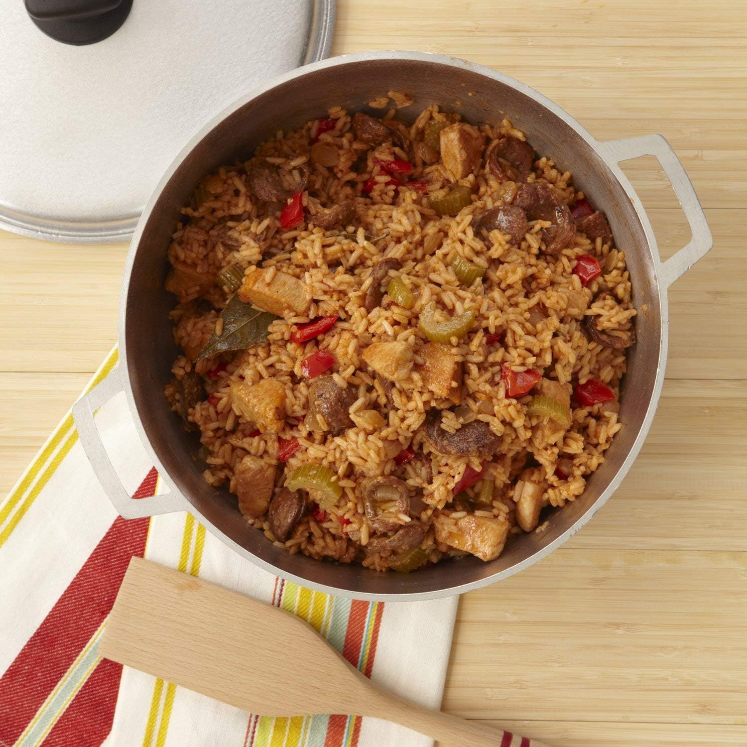 The IMUSA caldero is the ‘workhorse’ of any Hispanic kitchen due to its versatility and unique design. The caldero (or ‘cauldron’ in English) has rounded sides, a tight fitting lid, and superior heat distribution. Calderos are used to cook rice, beans, braise meat, and simmer stews and soups.