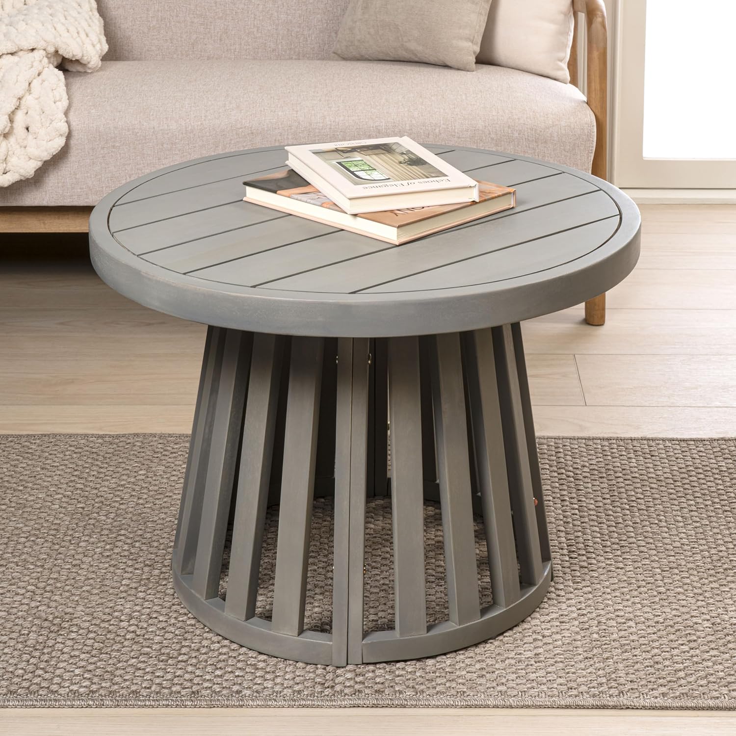 Elevate your outdoor living space with this beautifully crafted coffee table. Its solid wood construction ensures durability, while the unique slatted pedestal base adds architectural interest to your patio or deck. Gather around for conversation and create lasting memories with this stunning centerpiece that perfectly blends style and function for any occasion.