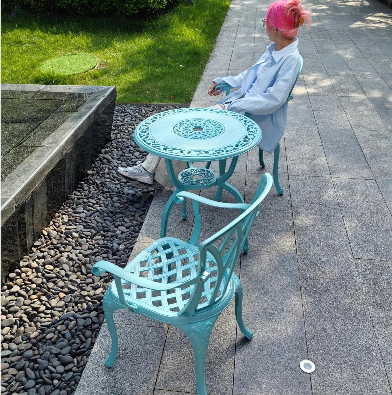 Our three-piece set: solid quality Our outdoor furniture is made of solid cast aluminum, with a smooth surface, waterproof and rust-proof; strong pressure resistance, no deformation; durable and easy to clean. Delicate rose design Outdoor tables and chairs are designed with rose carving, high temperature spray painting, gold plating, and exquisite carving; smooth lines and exquisite appearance can show your personal taste everywhere. You can add patio tables and chairs to your backyard, bistro, patio, balcony or garden to add a romantic touch. Whether in the backyard, patio, balcony or garden, you can enjoy outdoor leisure time with family or friends!