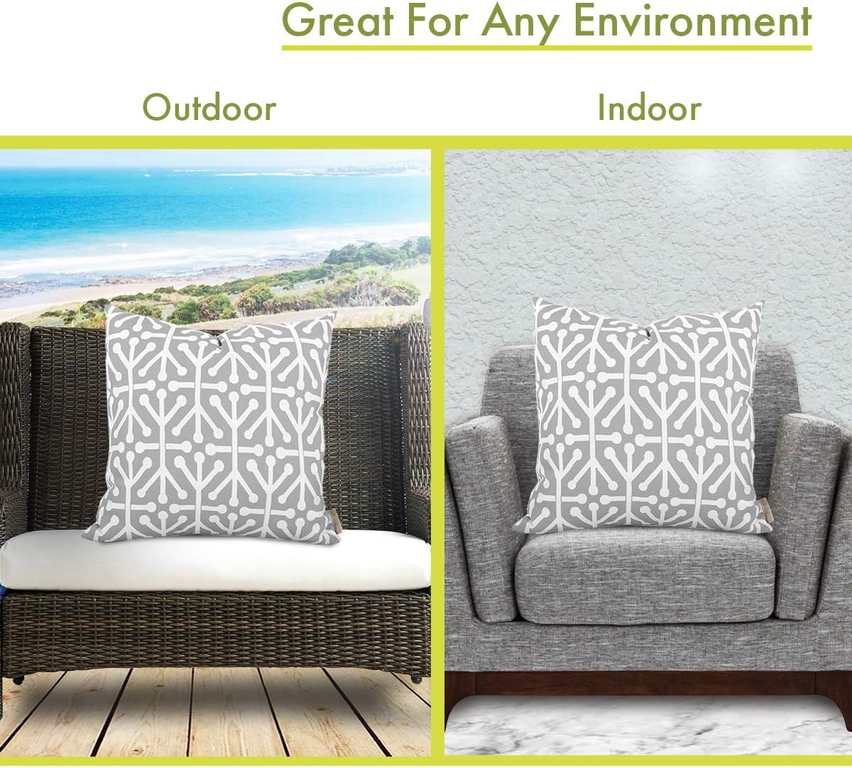 Add a splash of color and a little texture to any environment with these plush pillows by Majestic Home Goods. The Majestic Home Goods Gray Aruba Extra Large Pillow will instantly lend a comfortable look to your living room, family room or patio. Whether you are using them as decor throw pillows or simply for support, Majestic Home Goods Extra Large Pillows are the ideal addition to your home. These throw pillows are woven from outdoor treated polyester with over 1000 hours of UV protection and filled with Super Loft recycled Polyester Fiber Fill, for a comfortable but durable look. Spot clean only.