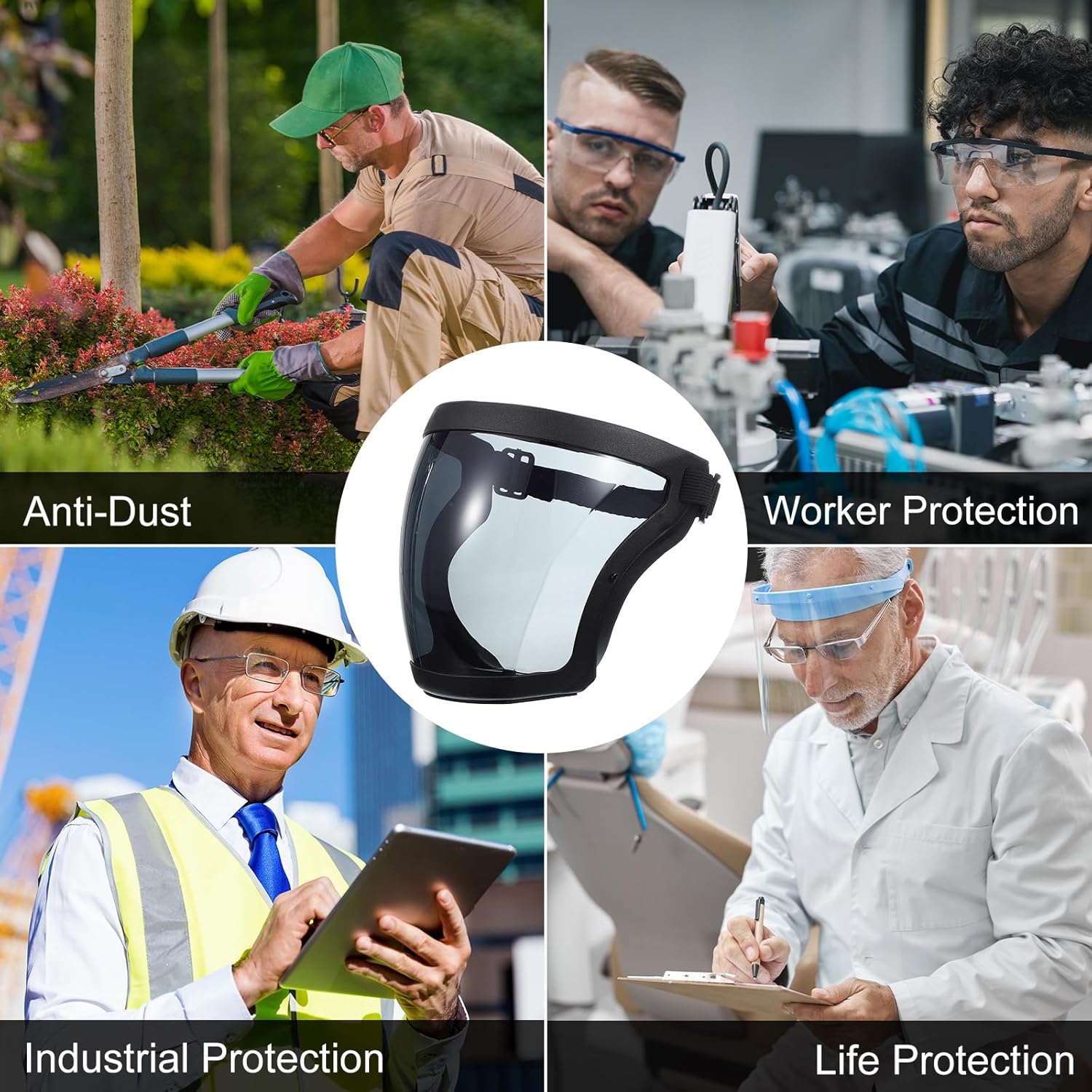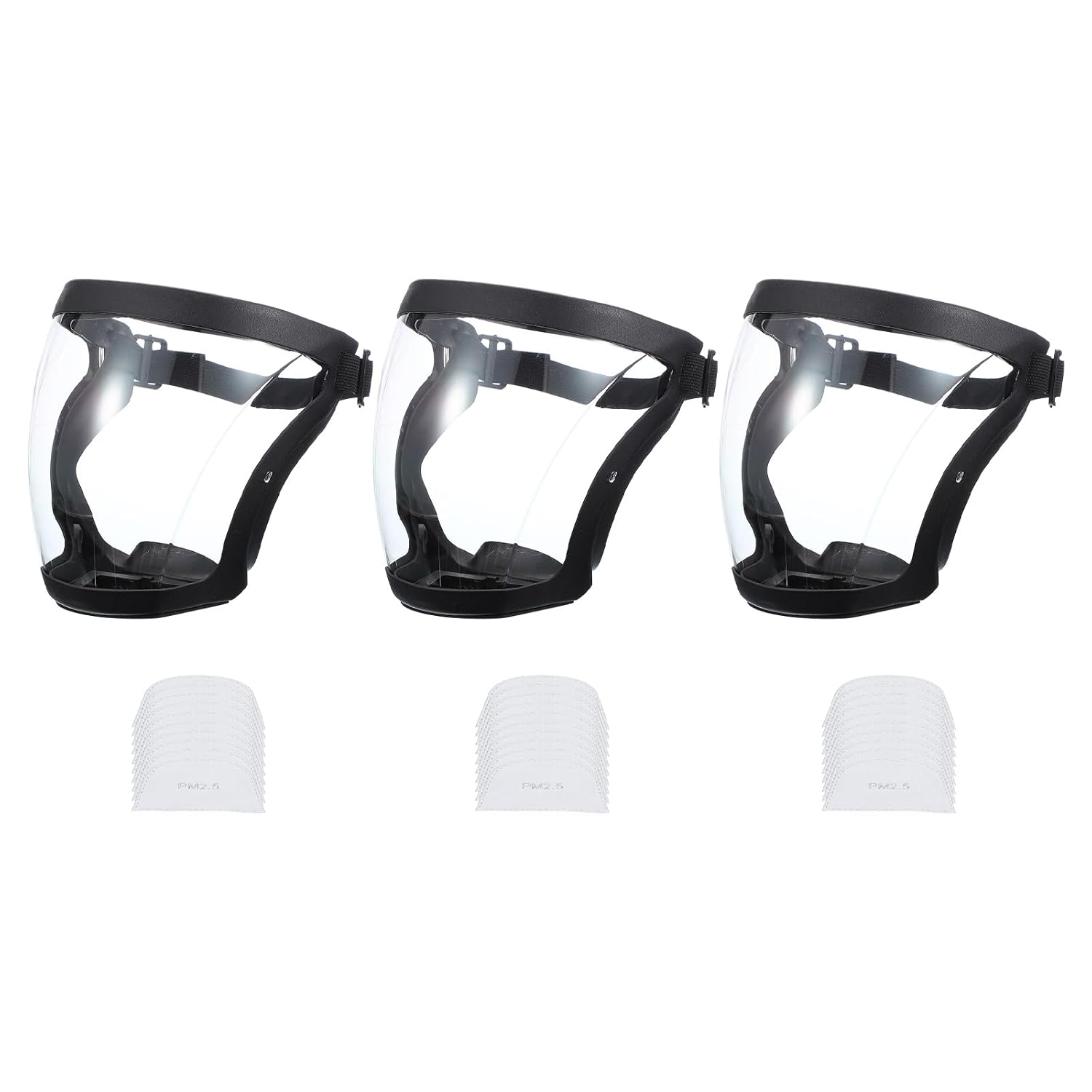 What is this?This protective face shield set is good for individuals working in both indoor and outdoor environments. It is suitable for a variety of settings, such as outdoor activities, supermarkets, parks, restaurants, warehouses, offices, public transportation, food services, retail stores, beauty workshops, laboratories, educational institutions, receptionists, security personnel, and more.What will I get?The protective face shield set, we provide here, is in the size of:Material: PC PlasticTotal Size: 18 x 17 cm / 7 x 6.7 inch (W*H)Packing List: 1 Set: 1Pcs x Safety Face Shield, 3Pcs x Lens, 30Pcs x Filter GasketsIs there any advantages of the product?Ultra Transparent & Anti-Fog: The face shield mask is constructed of soft and comfortable silicone material and a highly flexible plastic clear window, is easy to adjust and features an adjustable elastic band for comfort. It is odorless, anti-frog, durable, and is sturdy enough to endure pressure and drops without deformation or tearing.Full Protection: A full face shield comes with a transparent curved window that naturally conforms to the contours of the face. It provides extensive coverage from the forehead to the chin, safeguarding against droplets, saliva, splashes, oil, and dust.How to use it?Before using the product, it is necessary to detach the filter slot located on the lower cover. Then, lay the filter pads flat on the top section, cover them, and reinsert the slot back into place.What should I notice?To prevent fogging, position the shield mask so that your face is not fully covered underneath it. Ensure that both your chin and the edge of the shield are aligned properly. The shield can be cleaned using water and soap.