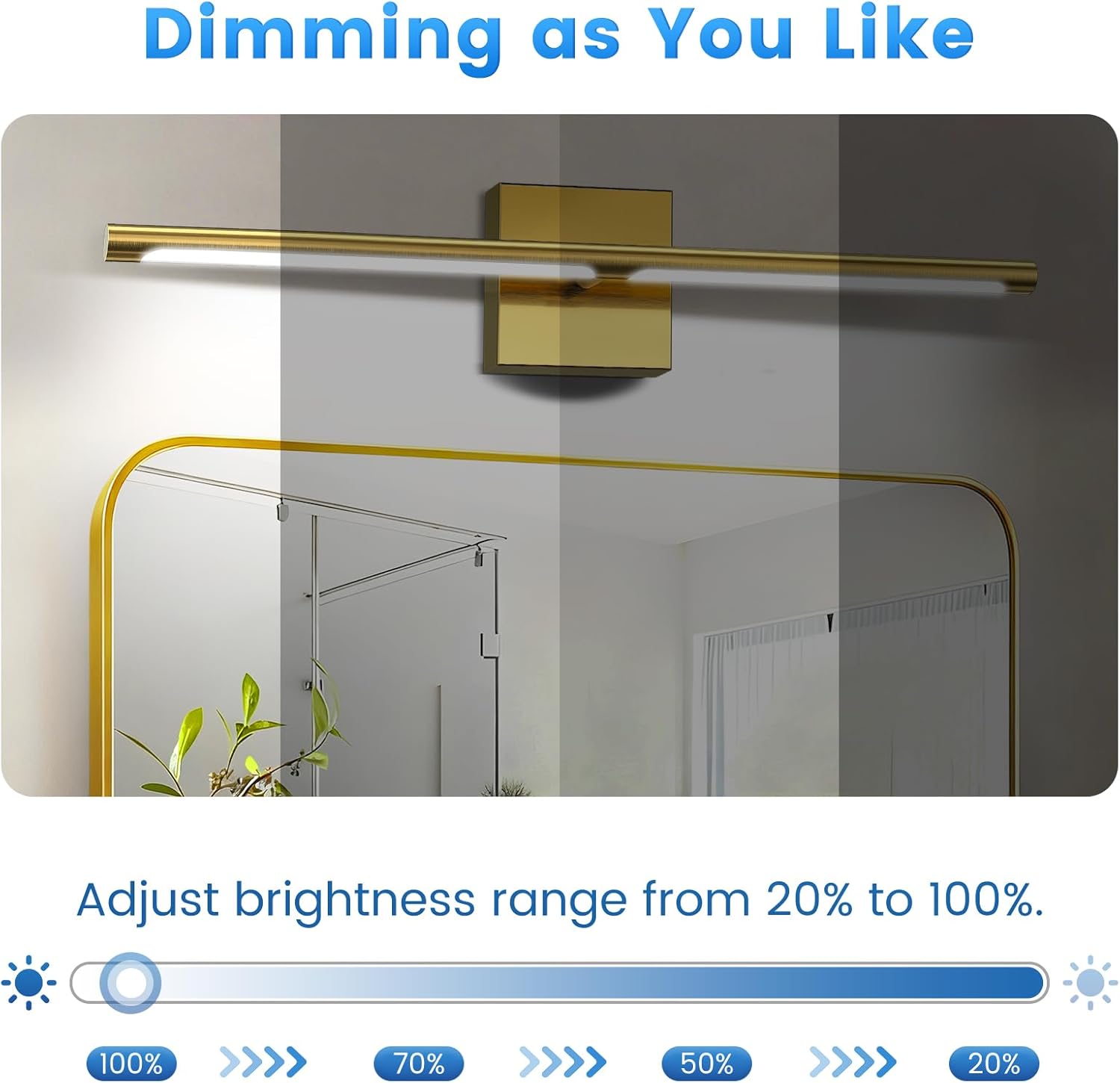 Modern Bathroom Vanity Light 32 inch, 20W Dimmable 6CCT Led Bathroom Light Fixture Over Mirror, Gold Bar Vanity Light for Mirror FCC Certificated, Classic Gold