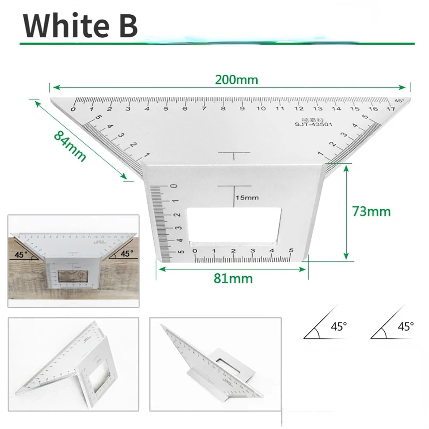 Hand ToolsMultifunctional T-shaped Woodworking Ruler Measuring Tool Aluminum Alloy Right Angle 45 Degree Scoring Guide Ruler CaliperSpecifications:Material: Aluminum Alloy/PlasticsColor: Black/Red/SilverApplication: Woodworking measurement scribingPackage Include:1pc T-Type Woodworking Gauge RulerNote:1. Please allow 1-2 cm error due to manual measurement.