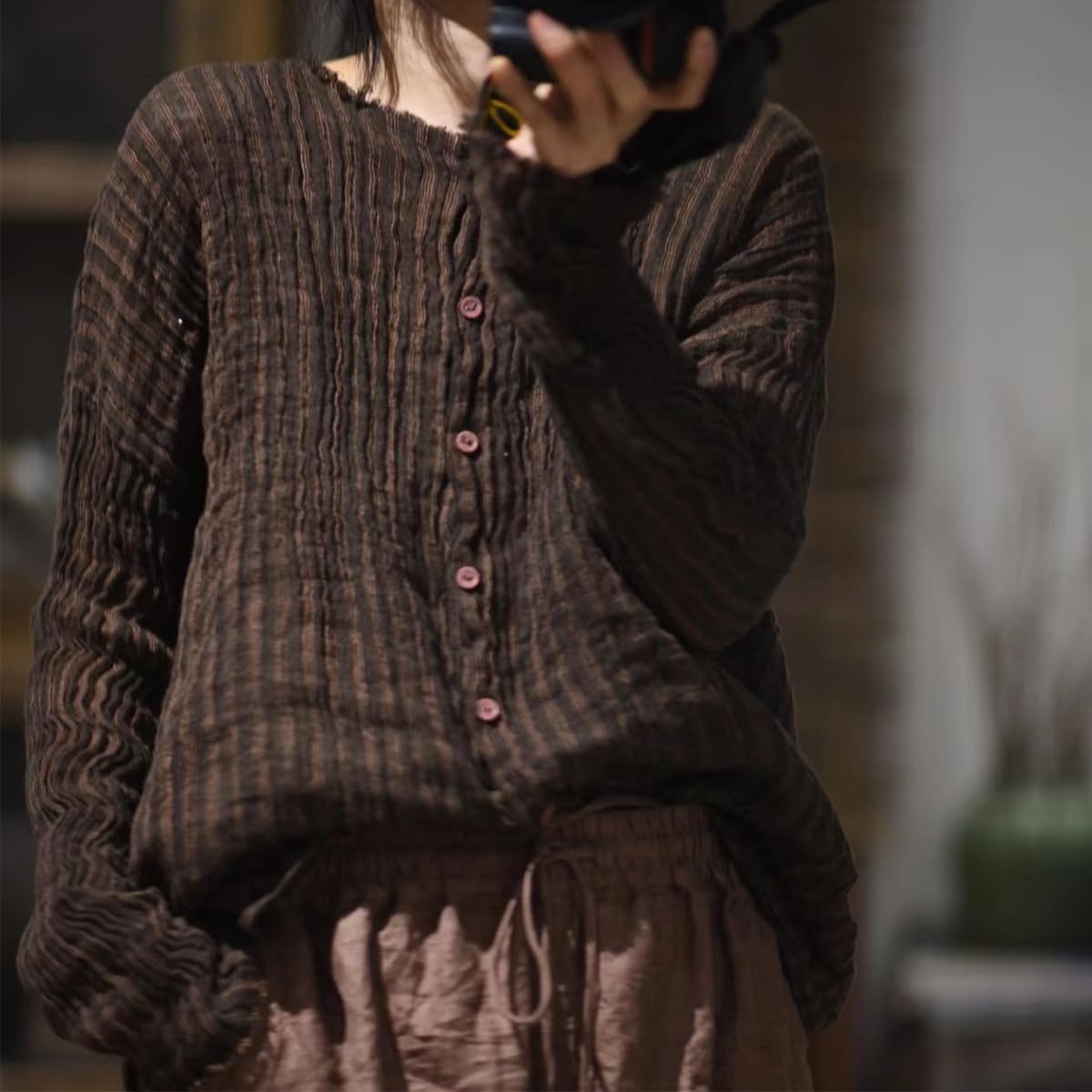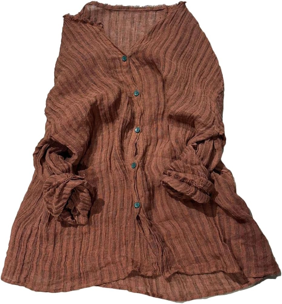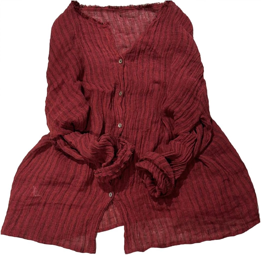 Womens Button Down Shirts Gauze Linen Dress Shirt Long Sleeve Pleated Stripe Tunic TopsColor difference:We strive to make our colors as accurate as possible; however, due to individual monitor settings, we cannot guarantee that the color you see on your screen is the exact color of the product. Size difference: This size information is just for reference only, and allow 1-2cm (0.4-0.8") differences due to manual measurement. Wash Recommended With Cold Water/Do Not Bleach/Hang Or Line Dry/Wash with like colours,that will increase the durability of your clothes.