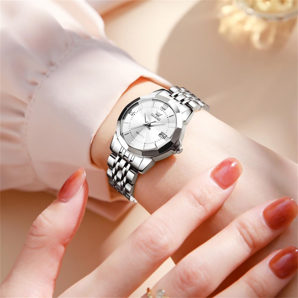 OLEVS Watches for Women Luxury Diamond Small Female Watches Stainless Steel Bracelet Waterproof Business Dress Analog Luminous Date Ladies Watches