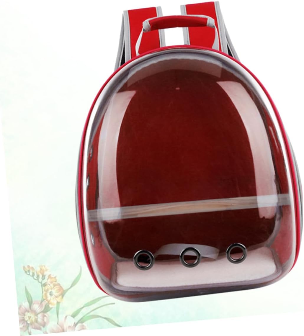 Package List 1 x pet backpack Characteristics - Color: Red parrot backpack. - Size: Approx. 42x31x18cm/16.54x12.2x7.09 inch. - Material: PC, oxford. - Made of materials, and to use parrot stand bag. - With venting hole, breathable and transparent window design, allowing birds to stay in backpack. - You can take your beloved cat anywhere and anytime birds backpack. - Inner thick wooden bar for ease parrot bird standing pet outdoor carry bag. - Casual style with simple solid appearance, a decortaion for you.Goods Descriptionparrot stand bag This item is well made of for and use.pet outdoor carry bag Its special design pets breathe freely and transparent window to feel comfortable in it.pet backpack With this carrier, you can take your pet with you anytime anywhere.parrot backpack This birds bag is especially designed for travelling with you