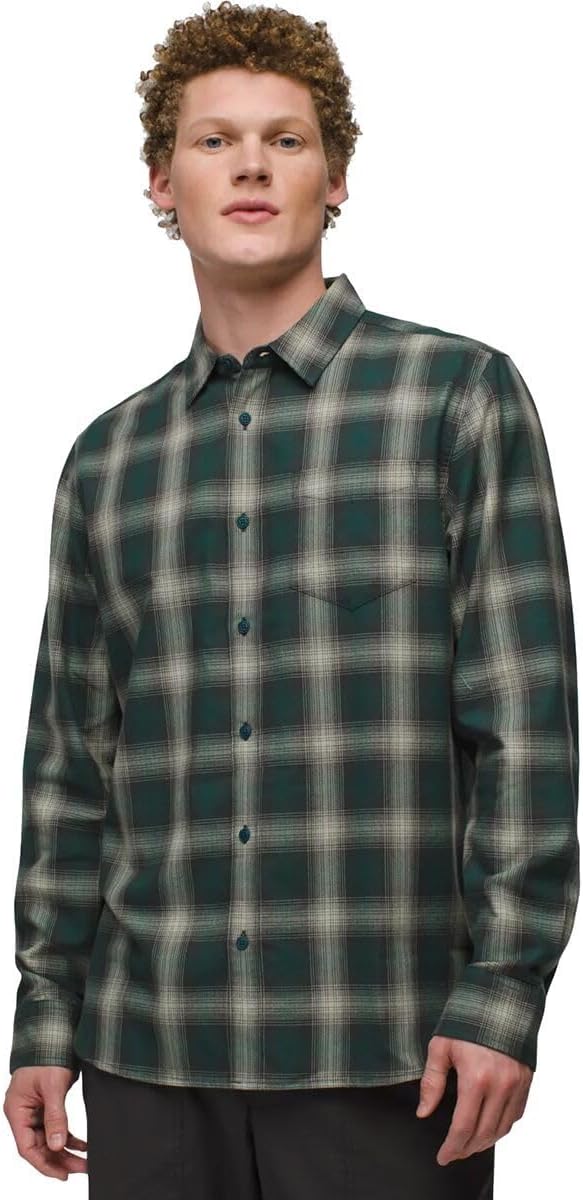 Single chest patch pocket • Side seam triangle insert detail • Internal security pocket • Exterior prAna woven label at bottom front hem