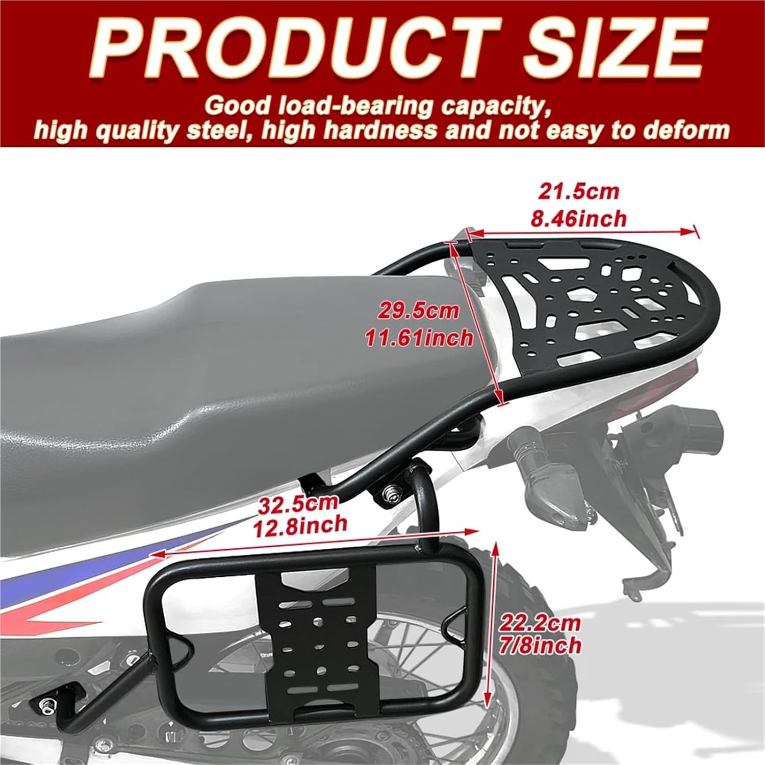 Dear, after placing your order,In order to ensure that our products match your car, please send me the model, version, year and vin of the car, preferably with pictures to prevent mistakes! Thank you for your cooperation and wish you a happy life!Item: Panniers Rack and Rear Luggage RackCondition: Color: BlackMaterial: SteelEasy to install, Installation Instructions includedFitment:For Honda XR150L 2014-2024Package Included:1 set of panniers racks (Left and right) &1 set of rear luggage rackMaterial : steel