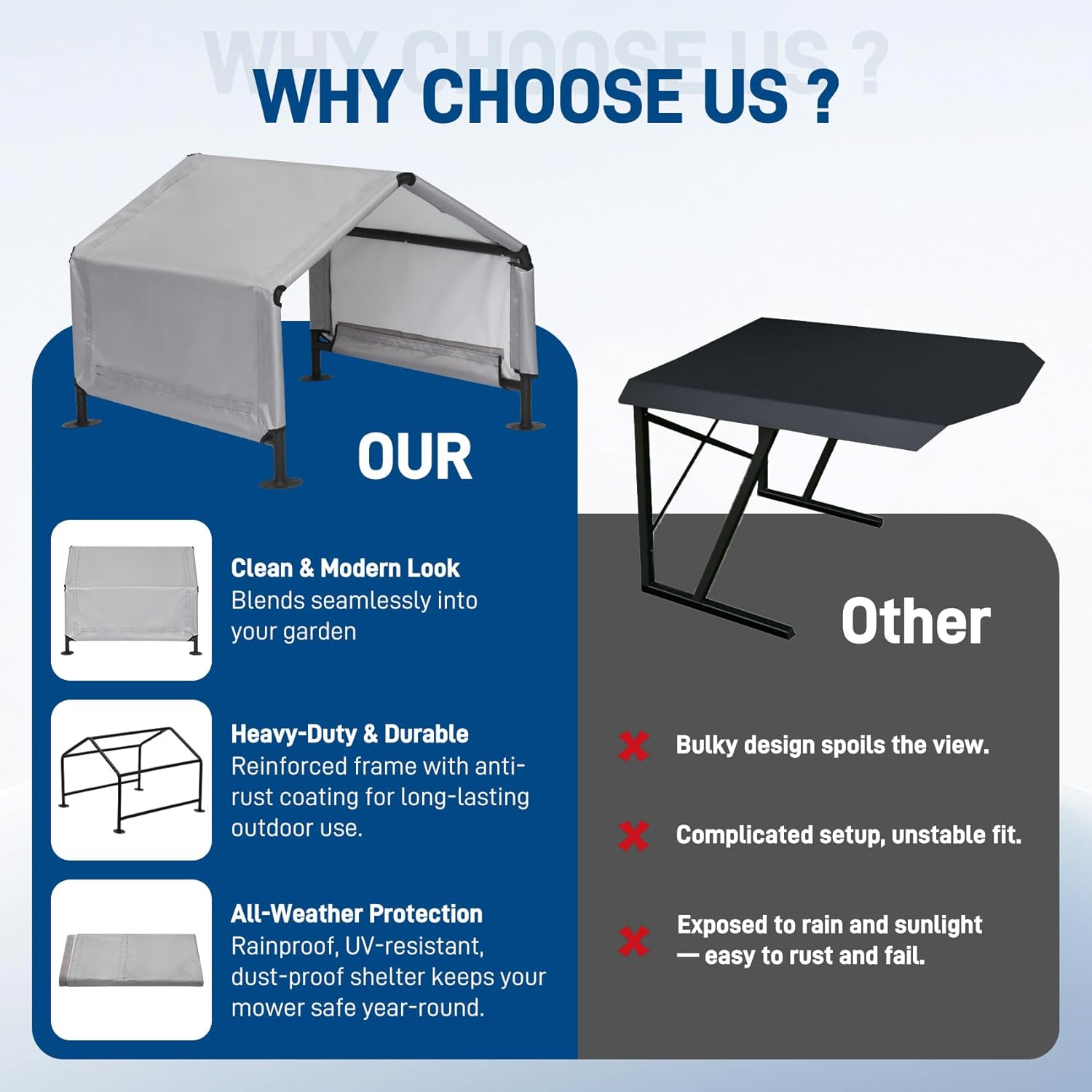 Benut Robot Mower Garage, Wire Free Robot Lawn Mower Cover Compatible with Ecovacs GOAT, LUBA 2, Anthbot, Navimow, YUKA 2000, Husqvarna, Worx Landroid, and more.