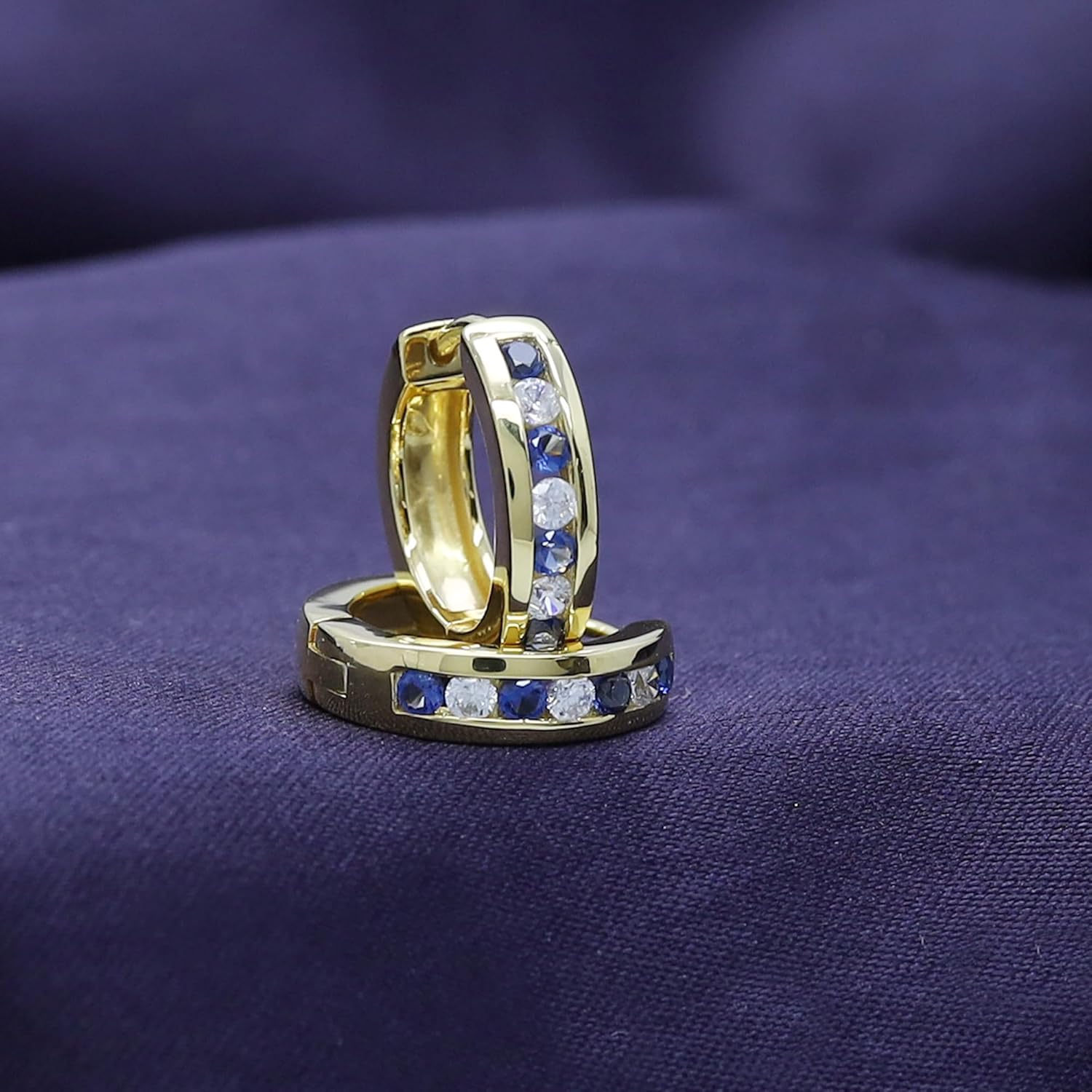 This Pair of Earrings is an ideal gift to your loved one or celebrate your personal style to changing, growing and evolving romance with this jewelry, Featuring Round Cut Simulated Blue Sapphire With Cubic Zirconia Huggies Hoop Earrings In 14K Gold Over Sterling Silver Simply Beautiful!! It Is a beautiful piece that complements your personal style with this jewelry for any special occasion like Mothers-day, Wedding, Engagement, Valentines-day, Anniversary,Birthday,Party, Prom and Christmas & so on..