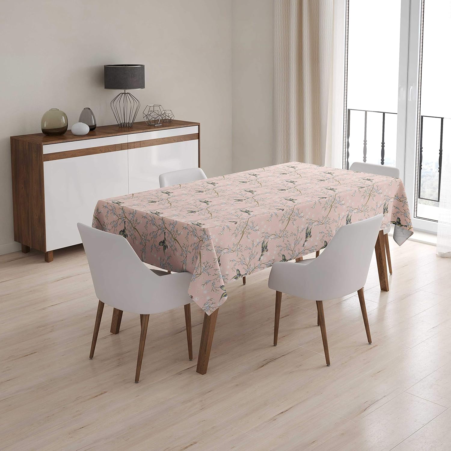 ✤ S4Sassy Home Decorative Bird Printed Tablecloth.✤ Color: Pale Pink2.✤ Material: Cotton Duck.✤ GSM: 200 | Yarn Count: 16 x 12 | Density: 80 x 30.✤ Features: Thick,Heavy Weight and Non-Transparent.✤ Wash Care: Gentle Machine wash at 40,Iron on medium Temperature,Dry in Shade.✤ Size: We offer various sizes in table cover. You can select the desired size.✤ Sale For: One-Piece Seamless Table Cloth.✤ We offer different Size Options for sale. You can select your desired Size option while placing your order.➊ 56 x 72 Inches - 4 Seater➋ 56 x 80 Inches - 6 Seater➌ 56 x 92 Inches - 6 Seater➍ 56 x 104 Inches - 8 Seater➎ 56 x 56 Inches - 4 Seater➏ 80 x 80 Inches - 8 Seater➽ P.S.: This listing include sale for only 1 table cover. So any other accessory shown in the image in not the part of the same and is for Photographic purpose only➽ Actual colors may vary from those shown due to the nature of photographing and monitor color settings.➽ Table cover is as per table size 36" inches wide and the table cover would have a 10" inches drop from all sides. Drop may vary as per Different table sizes.