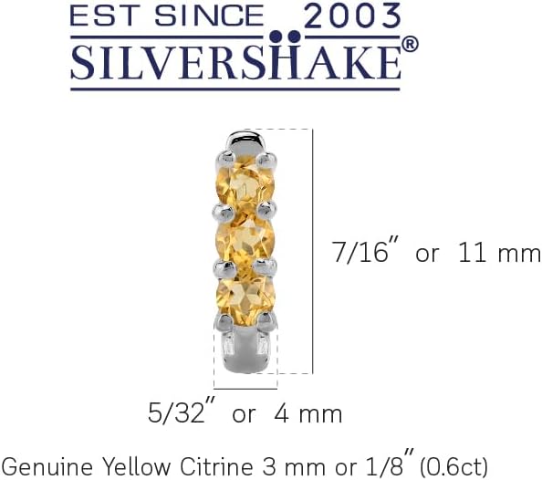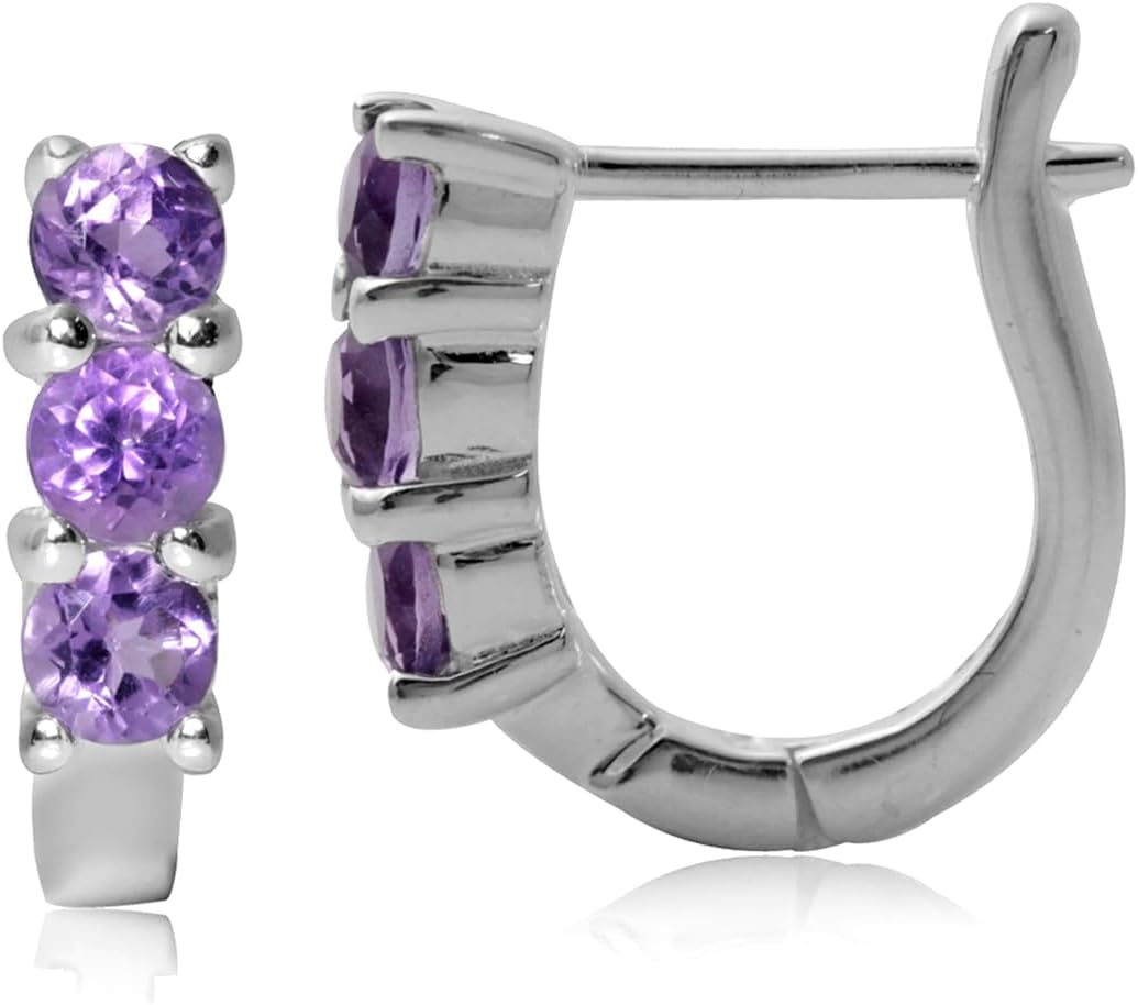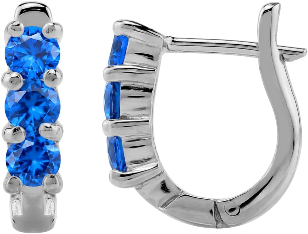 Silvershake 3-Stone 3MM Created Round Shape Gemstone White Gold Plated or Yellow Gold Plated 925 Sterling Silver English Huggie Hoop Earrings Jewelry for Women