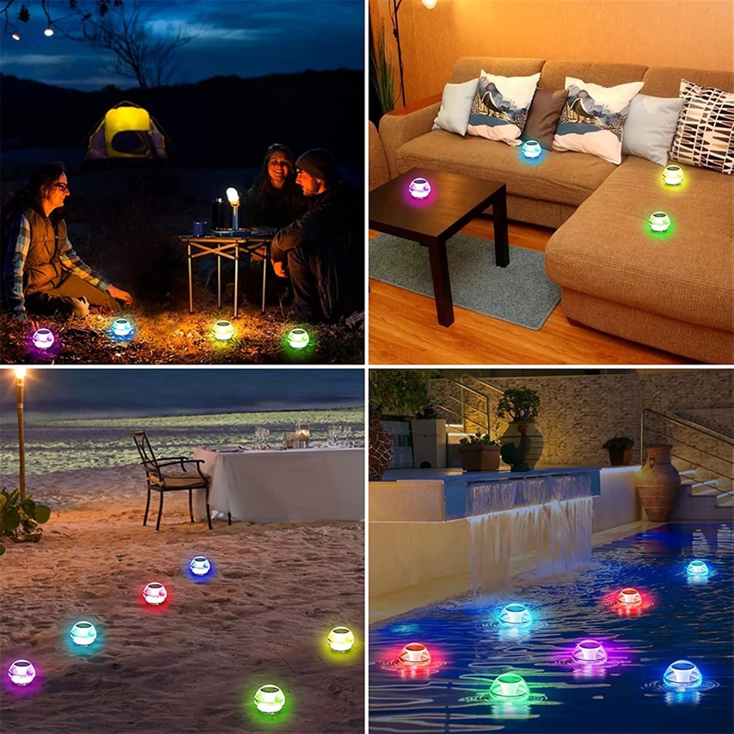 Pond LightsSolar Water Floating Light RGB LED Underwater Lights Submersible Lamp Swimming Pool Lights Outdoor IP68 Waterproof Night LampSpecification:Product :Solar Water Drift LampItem Material:PCLight Size:100*105mmPower Supply:Solar PoweredLight Color:Warm White/White/RGBWaterproof:IP65Sensing function:Light Controlled SensingCharging Time:6-8Hours(full of sunlight)Working Time:about 12 hoursInstallation scope:Places with direct sunlight such as gardens/pools/swimming pools/lawnsLifespan:20000hoursFeature:Quality Material:These solar floating pool lights are made of reliable PC Anti-corrosion material,which is for usage.Solar Charging & EnergySaving When the sun is abundant it can be charged for 6-8 hours and work for 12 hoursAutomatic sensing:automatic charging during the day, automatic lighting at night.IP65 Upgrade Waterproof:The swimming pool lights has grade IP65 waterproofing.Easy to Use:The solar floating lights have 3 modes.Conveniently choose any light you want with the push of a button.Wide Application: Very suitable for various theme parties, weddings, birthday, holiday and daily swimming pool, tub,garden,Spa bath decorations.Package Included:1/2/4*Solar Water Drift Lamp