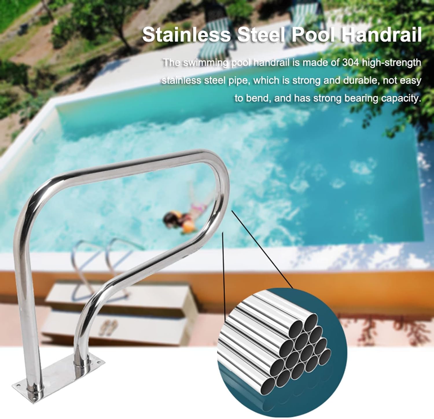 Our swimming pool handrails are made of strong and durable stainless steel material, strong load-bearing, anti-corrosion, strong safety, suitable for indoor and outdoor, enjoy life.Ergonomic Designed The pool rails for inground pool is ergonomic designed with humanized curve for convenient grasp. It will give your family a fabulous experience by decorating your swimming pool. 304 Stainless Steel 304 stainless steel is widely used in the production of a variety of products, corrosion resistance, no rust, long service life. Multiple Scenarios Our spa handrail is the best choice for multiple scenarios, which is suitable for swimming pool, sloped entry, spa, water. Polished Surface The smooth polished surface with great high gloss makes it not only a safety facility, but also a decoration. Heavy Duty Parts The handrail with the high quality ensure the base plate connect with the deck frimly. Well Weld The handrail connect with the base with well workmanship Specifications: Color: Sliver Material: Stainless Steel SS304 Product size: 81x58x10cm/31.9x22.8x3.9in Tube thickness: 1.0 mm Load capacity: Max 440 lbs Package Include: 1 x Swimming Pool Handrail After Sales Question: 1. Delivery Date: As we use international logistics, the delivery time is generally around 14-21 days. 2. If you have any questions, you can contact us, we will reply within 24 hours.