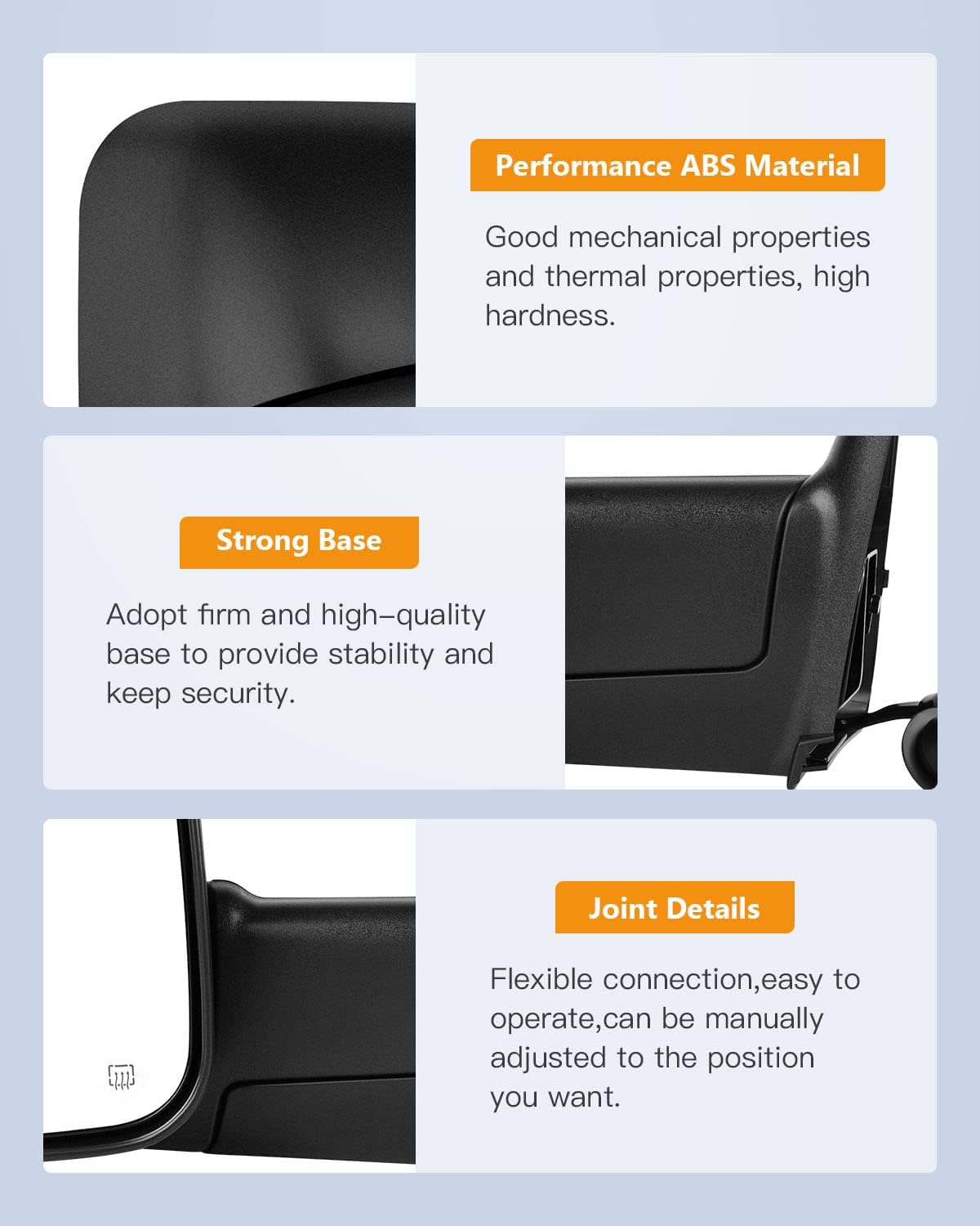 | Other Special Features of the Product | Manual folding and Flip Up,heated,with Black Housing |