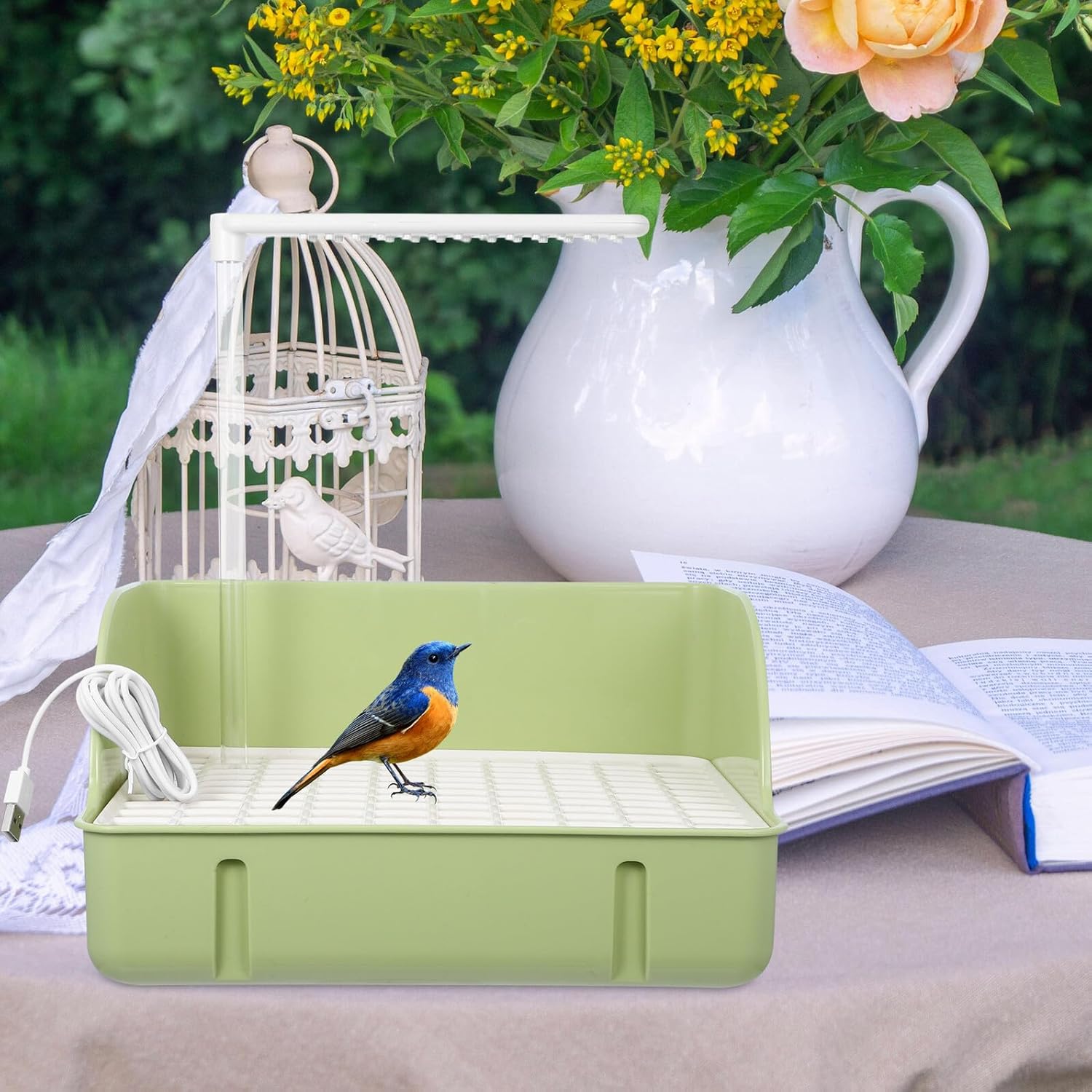 Package List 1 ' bathtub Features -Relaxing shower experience: the shower head provides a gentle, rain-like flow that soothes your pet, making bath time a calming experience parrot automatic bathtub -Product Info: Bird Automatic Bathtub -Water usage: the automatic circulation system minimizes water consumption, making it choice for pet owners parrot bathing -Compact and convenient: ideal for small living spaces, this bath tub allows you to clean your pet without the need for a large water basin parrot bath tub -Fun and functional: the combination of a bath tub and keeps your pet entertained while bathing, fostering a stronger bond between you and your pet bird tub -Color:Light Green -Clean design: the bath tub's design ensures easy cleaning and maintenance, a clean and healthy environment for your pet bird external bath tub self-circulating -Material:Plastic -Size: 33.00X29.20X21.50cm/12.97X11.48X8.45inGoods Descriptionpet parrot circulating water bathtub The attached shower head mimics natural rain, encouraging birds to enjoy a engaging bath while their overall health and cleanliness.bird bathtub Designed with a built-in water circulation system, this bird bathtub ensures a continuous flow of clean water, making it ideal for parrots, macaws, and other pet birds